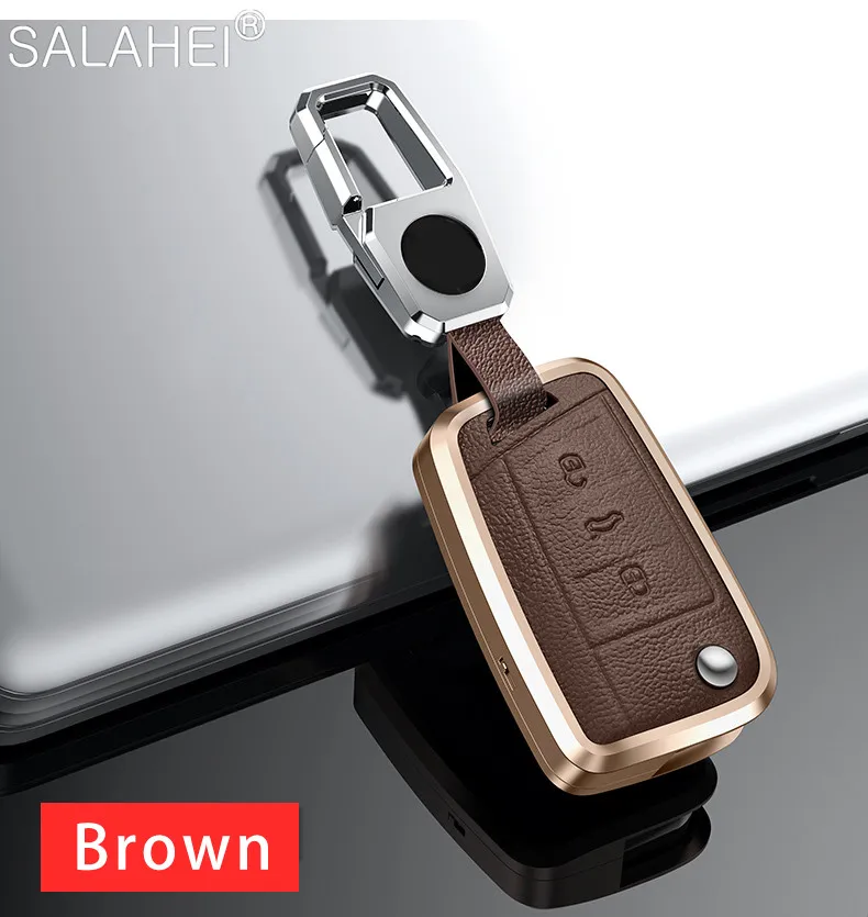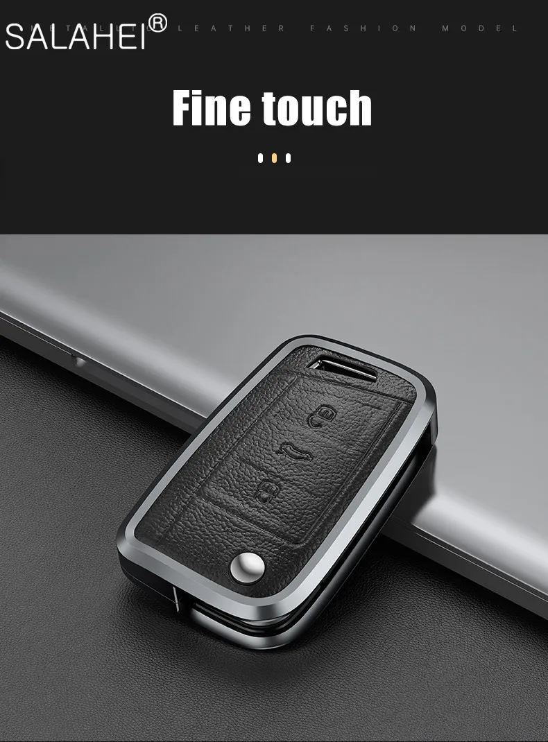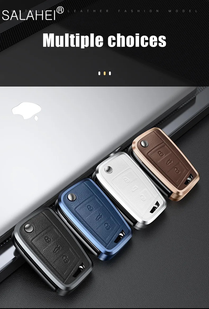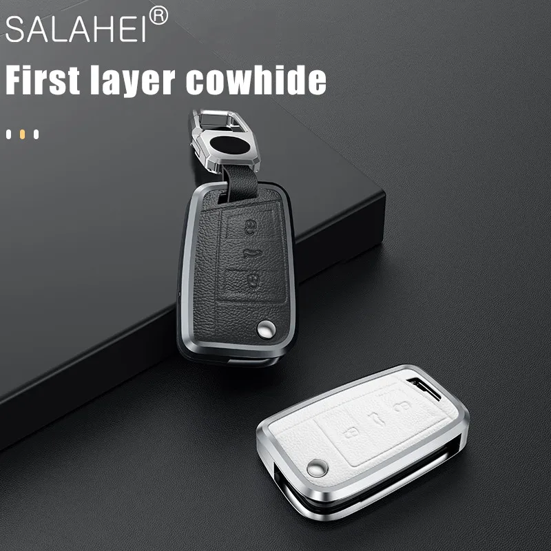 Aluminum Alloy+Leather Car Key Cover For VW Volkswagen Golf 7 MK7 Tiguan MK2 For SEAT Ateca Leon FR 2 Ibiza For Skoda Octavia A7