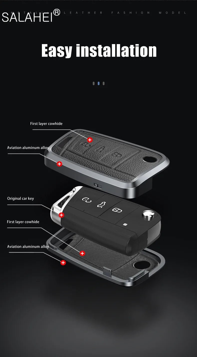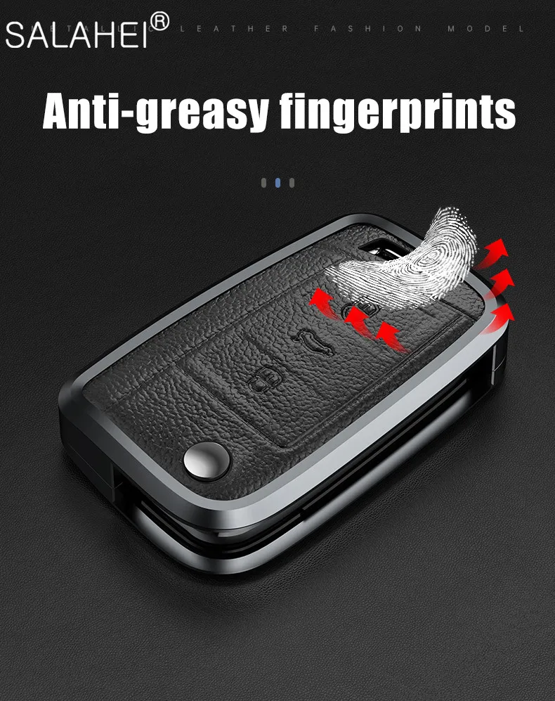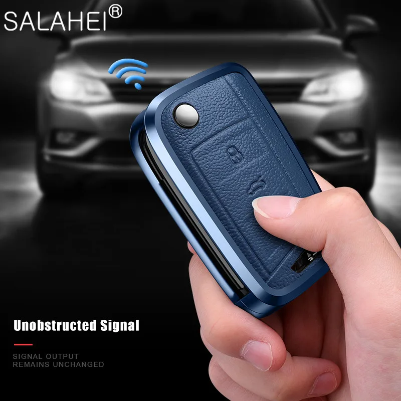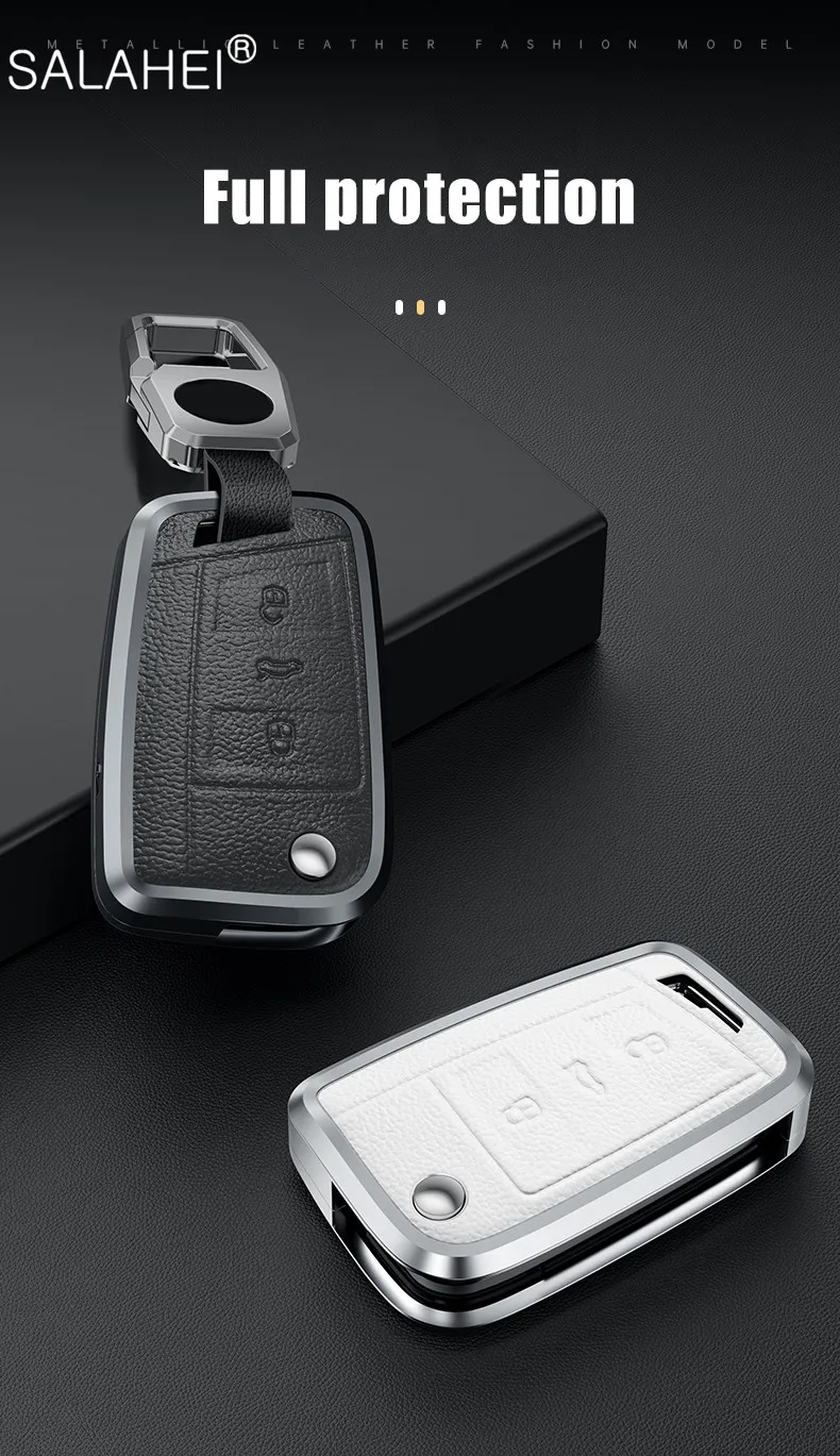 Aluminum Alloy+Leather Car Key Cover For VW Volkswagen Golf 7 MK7 Tiguan MK2 For SEAT Ateca Leon FR 2 Ibiza For Skoda Octavia A7