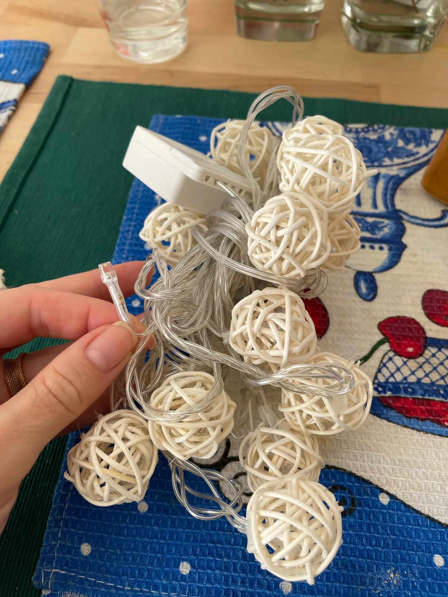 Хорошая гирлянда, быстро доставили, сами ротанговые шарики небольшие по размеру. Заказом довольна