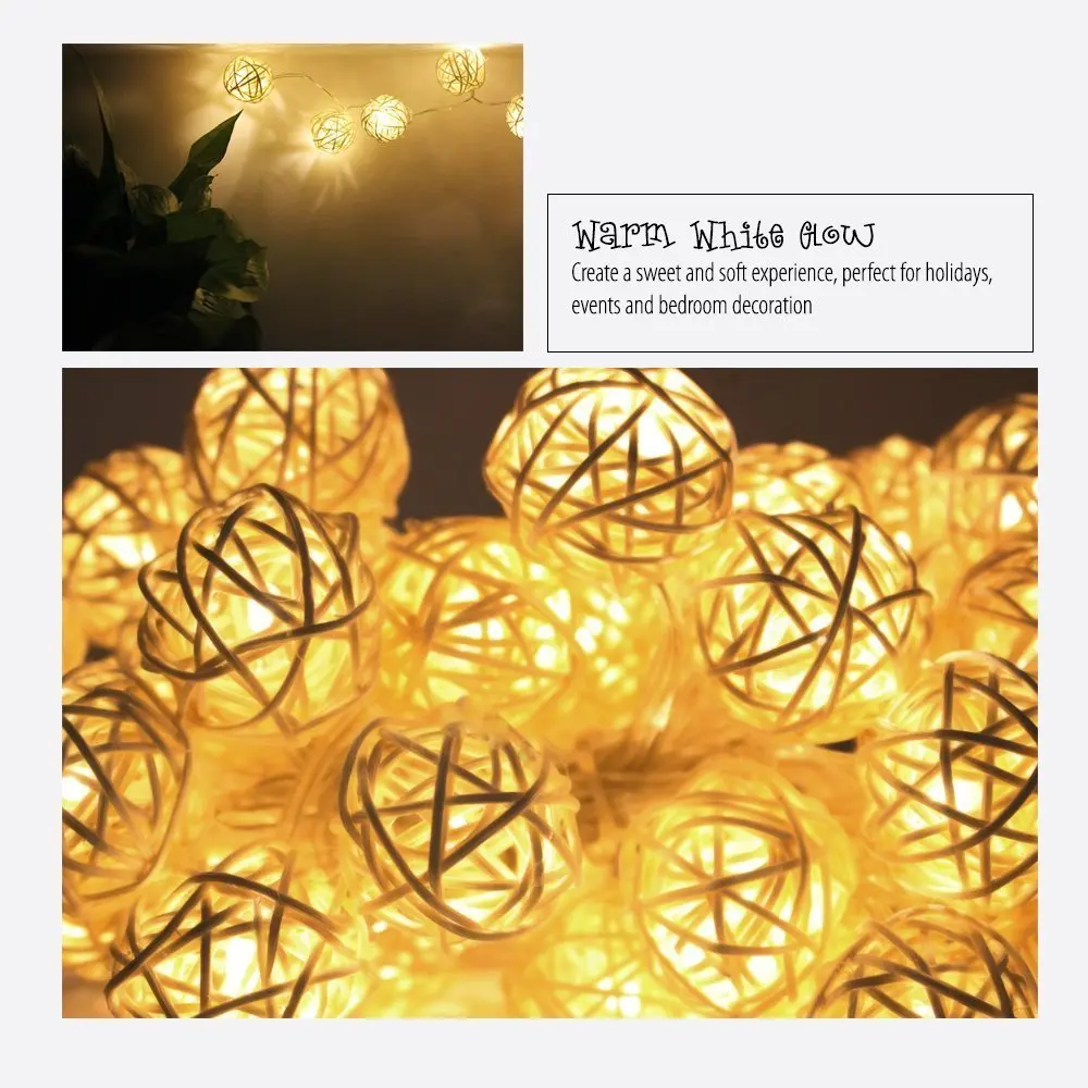 СВЕТОДИОДНАЯ Гирлянда Sepak Takraw с ротанговыми шариками, хлопковая светодиодная гирлянда теплого белого цвета с цепочкой, праздничное Рождественское украшение, 5 м, 20 светодиодов