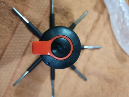 Чтобы открыть отсек с батарейками нужно упереть красную защёлку в край стола, а сам инструмент тянуть вниз, вручную, пальцами не удалось открыть крышку. Так как я получил данный товар в сбить цену, около 23р. считаю, что товар достойный. 6 отвёрток + в центре стержень, который выкручивается и там 2 часовые насадки- отвёточки. Набор упакован в оригинальную коробку на которой описана комплектация инструмента. В комплекте должны быть те самые 3ААА, аккумуляторы. Их в наборе к сожалению не было, на все вопросы магазин решил отмолчаться не свидетельствовать против себя. За это 4 общие звезды. Отвёртки выполнены вроде бы из металла, сам механизм из металла покрепче. Набор за сумму которую я отдал отличный, думаю если установить аккумуляторы, то и фонарик будет работать.