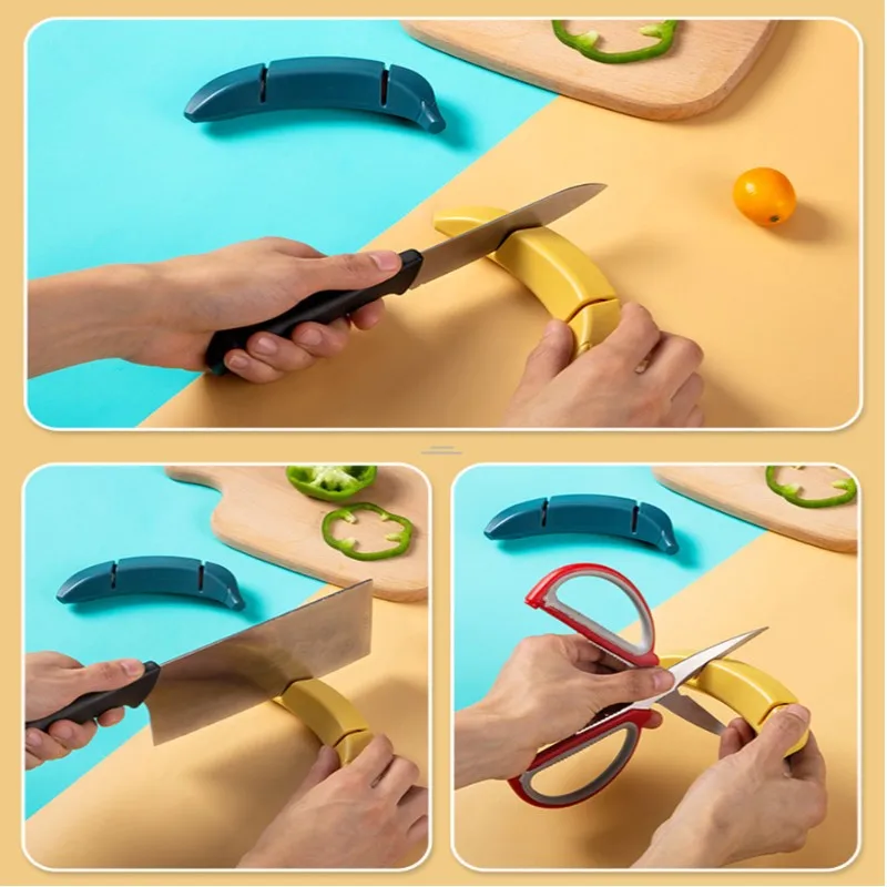 Домашний точильный камень в форме банана, 1 шт., двухступенчатый инструмент для быстрой заточки, домашний кухонный нож, точильный камень