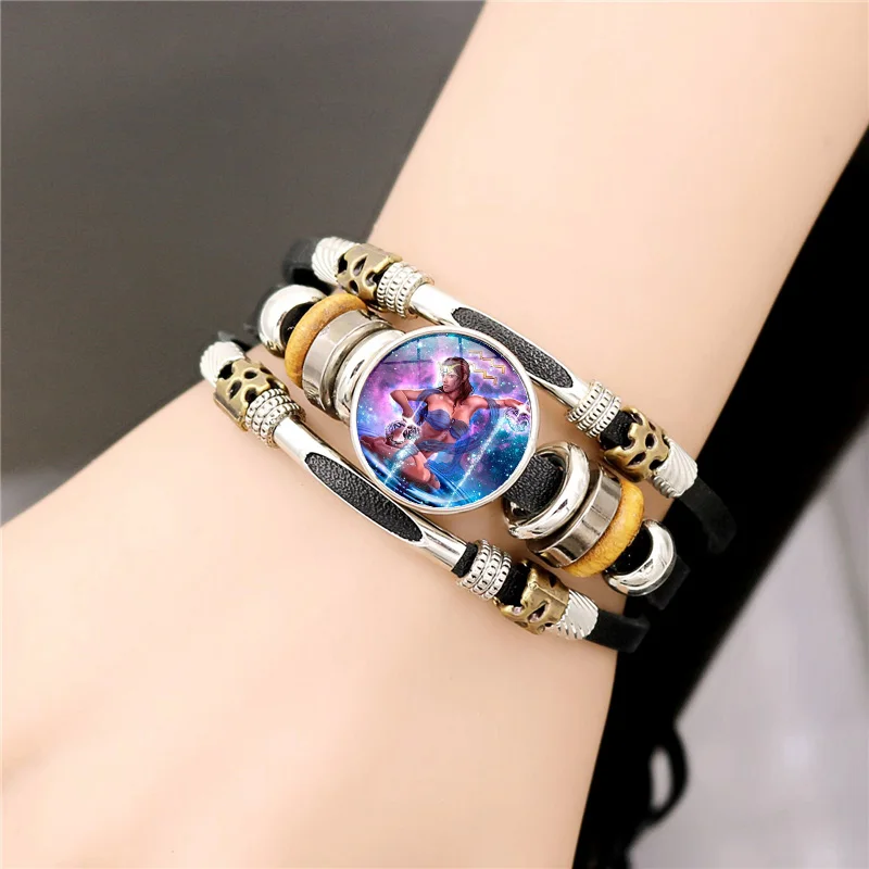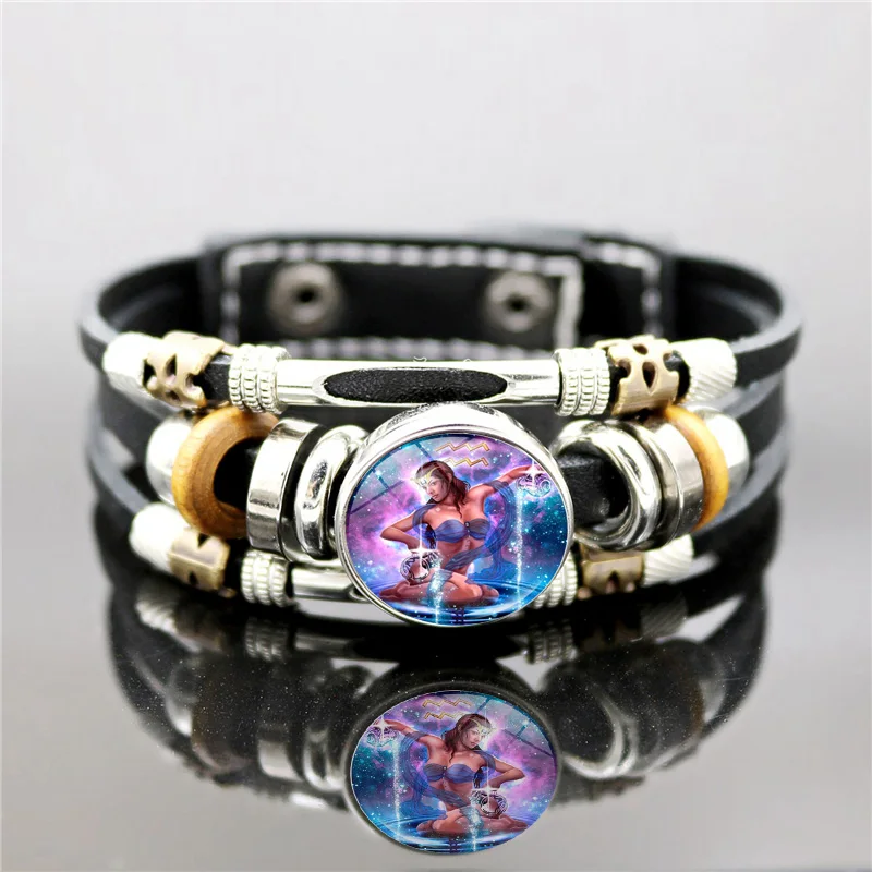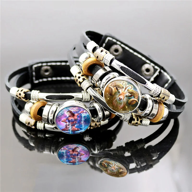 Кожаный браслет со знаками Зодиака, 12 созвездий, женский браслет с...
