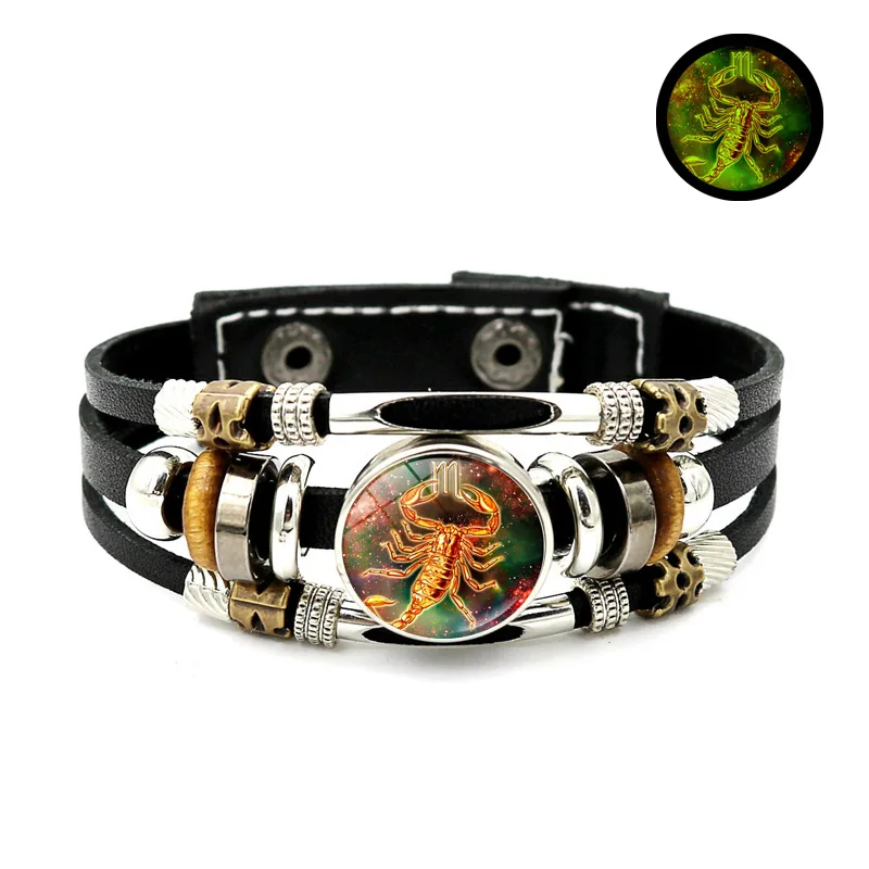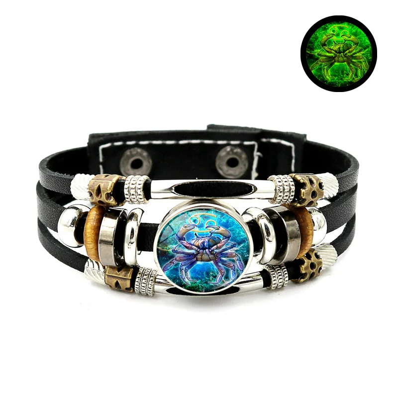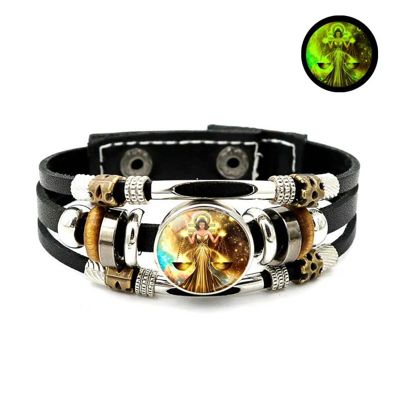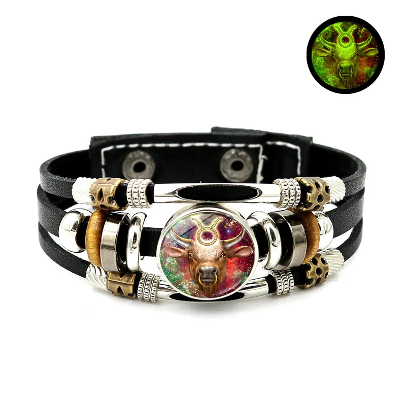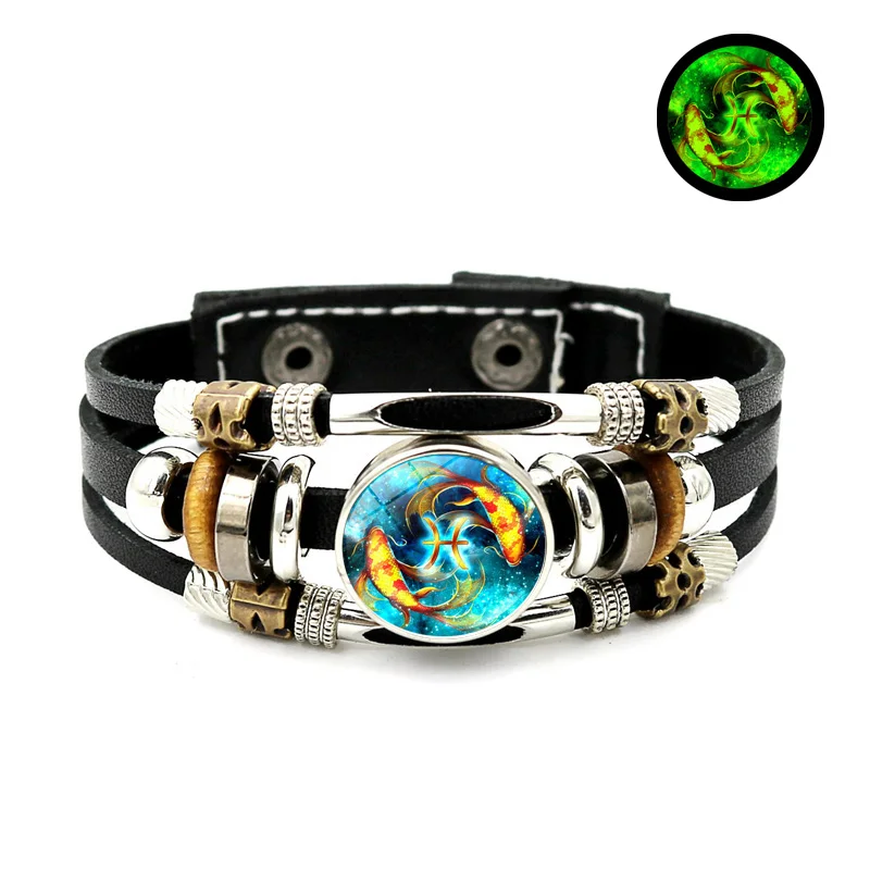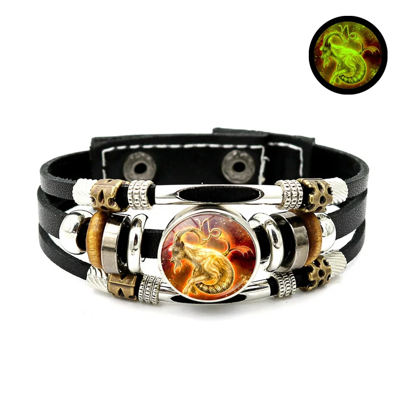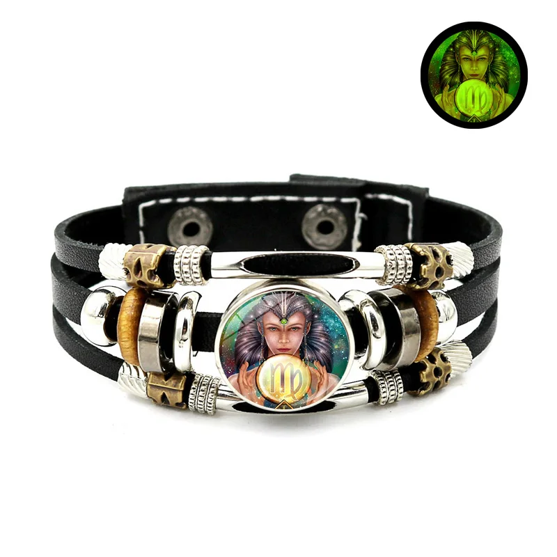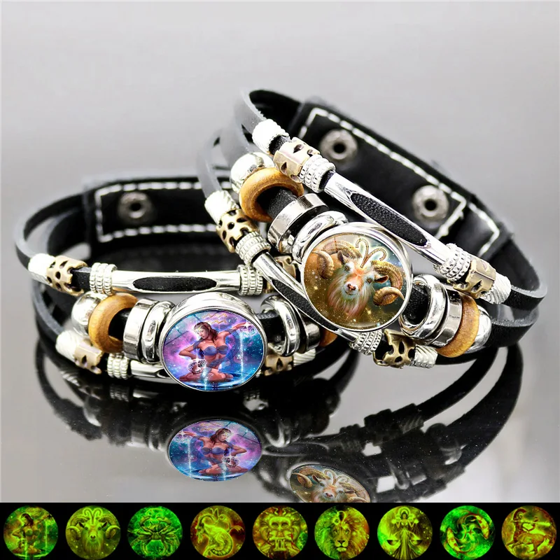 Браслет со светящимися знаками Зодиака, 12 созвездий, ювелирные изделия, Овен, близнецы, дева, пуговица, многослойные плетеные браслеты для пар, подарок