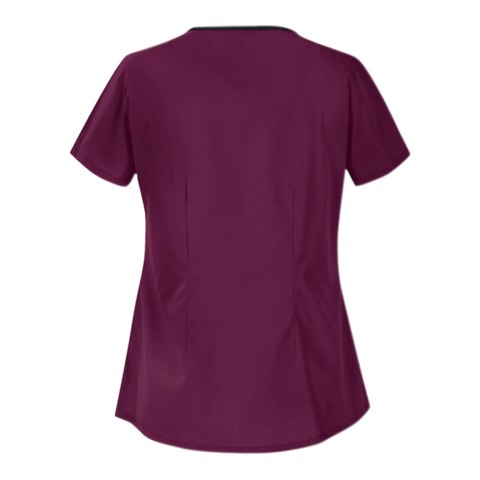 Блузка женская с коротким рукавом, однотонная Рабочая форма, модный дизайн, комбинезон с V-образным вырезом, рубашка с карманами для работников, топы для женщин