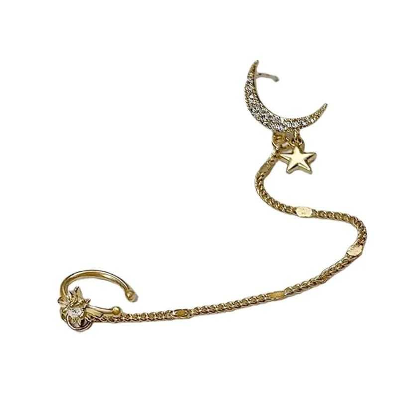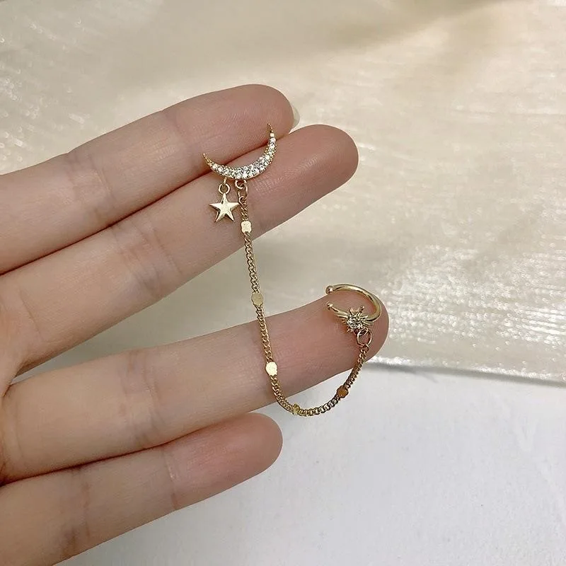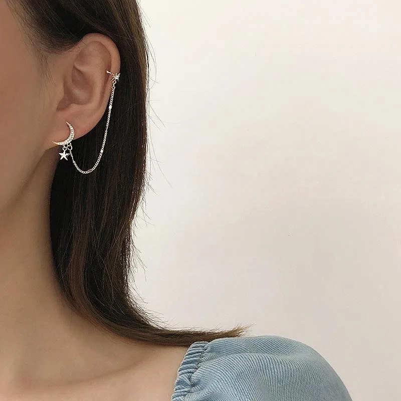 Простые Длинные серьги-цепочки в форме Луны и звезды для женщин, блестящие серьги в форме солнца и полумесяца с геометрической кисточкой для пирсинга