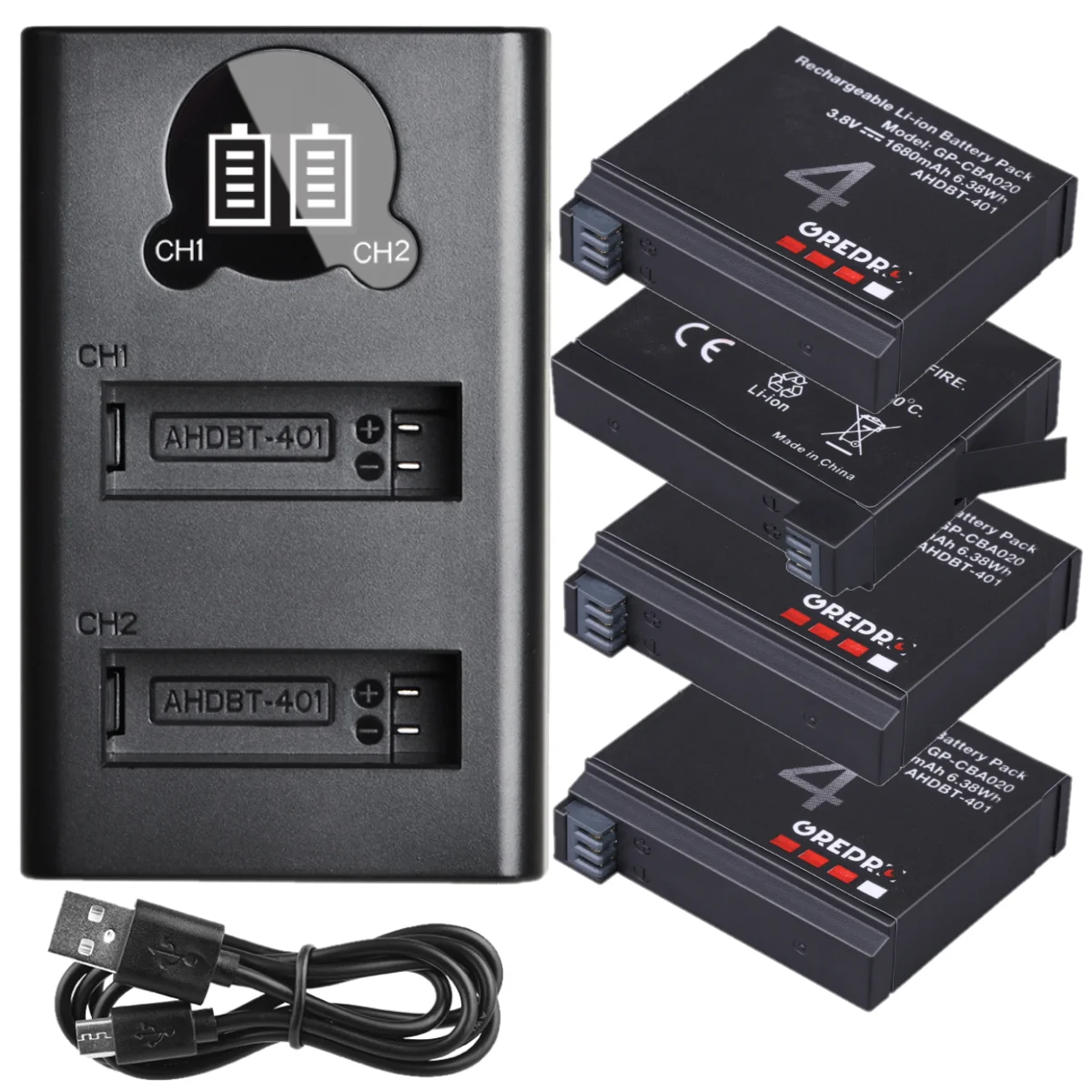 AHDBT-401 зарядное устройство и набор аккумуляторов для GoPro Hero 4 Silver, Hero 4 Black, батарея для экшн-камеры Hero4