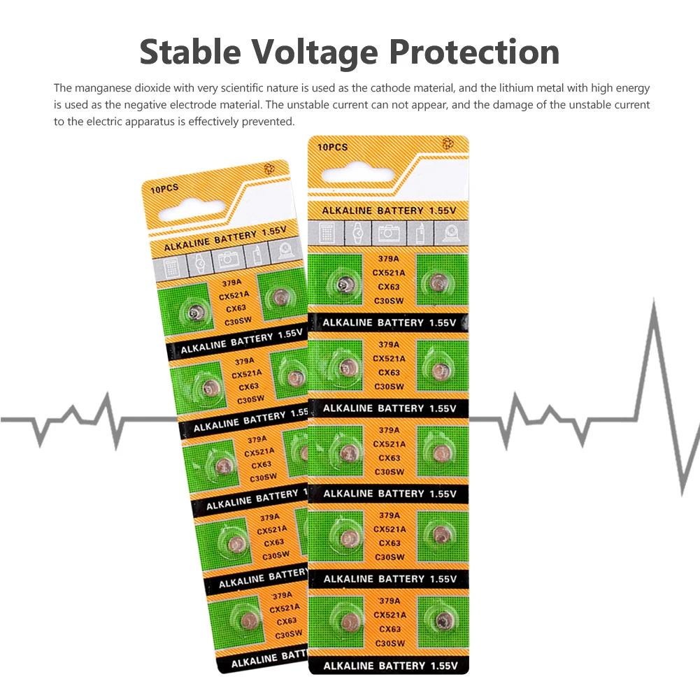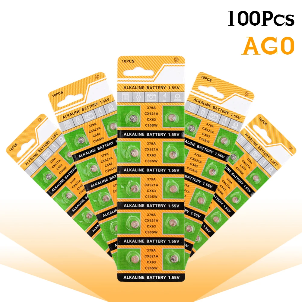 100 шт., долговечные кнопочные батареи AG0 LR521, щелочная батарея 379A SR521 379 618 SR63 521 SR521SW для часов, игрушек, калькуляторов, батарея