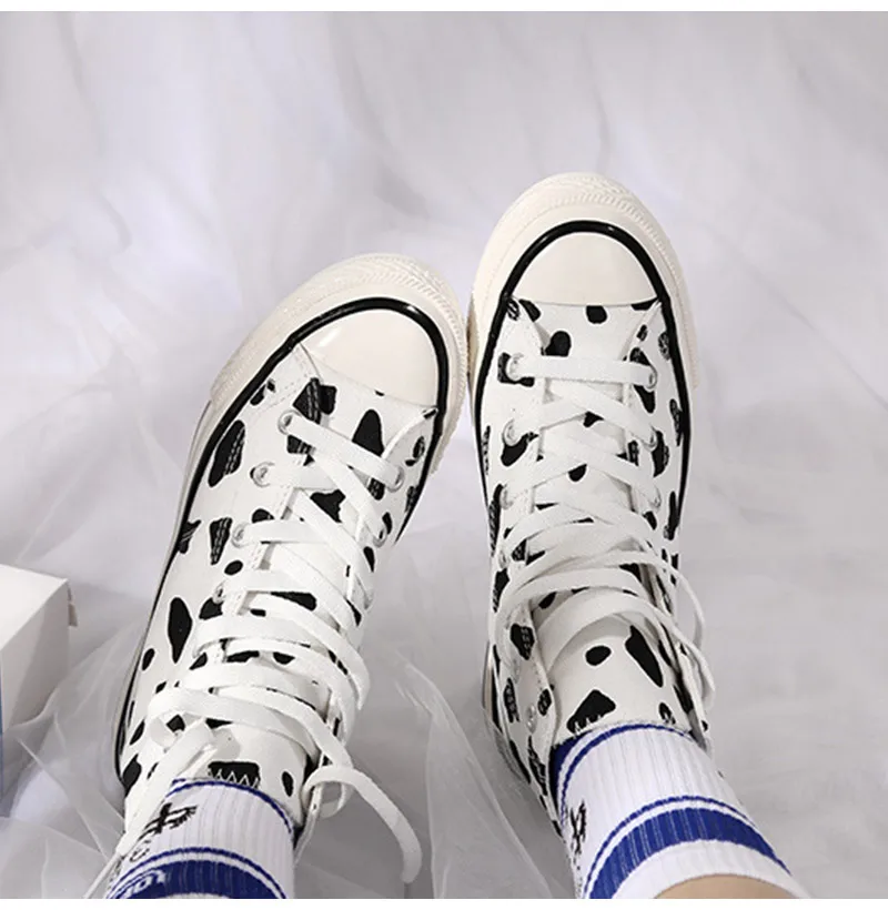 Женские парусиновые кроссовки, классические туфли на плоской подошве, женские пятнистые туфли со шнуровкой из коровьей кожи, женские высокие туфли для студентов, 2021