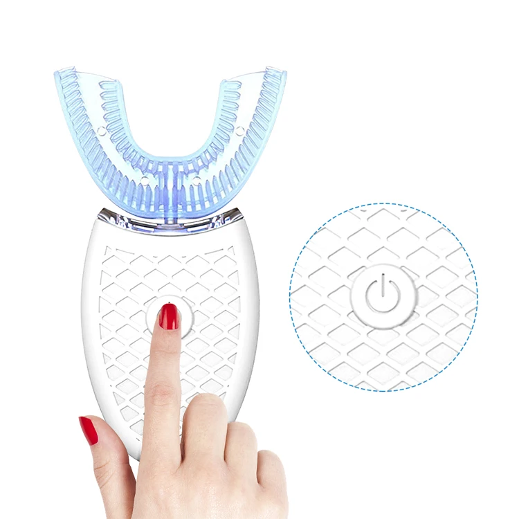 Характеристика:【Улучшенный материал 】 головка зубной щетки u-образной формы изготовлена из пищевого силикона, мягкого, нетоксичного и не вредного, эффективно стерилизующего и комфортного массажа.【 4 режима работы 】режим мягкой очистки, мощный режим очистки, режим массажа и холодный светильник, Режим отбеливания. Вы можете настроить его, просто нажав на выключатель питания.【U-образный дизайн 】предназначен для идеального прилегания человеческого рта, при вибрации 48000 об/мин он очищает зубы без мертвых углов.【Smart и удобный Using】USB перезаряжаемый обеспечивает чистку зубов без рук и водонепроницаемость IPX7 для более эффективного и удобного использования.【Функция автоматической памяти 】функция автоматической памяти делает 45 секунд время чистки зубов и 15 минут холодный светильник время отбеливания зубов.【Сильная функциональность 】ультразвуковая волновая технология, она может удалить больше пятен зубов, зубного налета, бактерий в короткие сроки, предлагая более здоровое и средство для отбеливания зубов.Спецификация:Материал: АБС + силиконИсточник питания: зарядка через USBЕмкость аккумулятора: 400 мАчВремя зарядки: прибл. 2 часаВремя непрерывного использования: 30 минутНапряжение: 5 ВМощность: 5 ВтВодонепроницаемость: IPX7Частота вибрации: 48000 об/минИндикатор зарядки: синий светильник мигает во время зарядки, постоянно включается при полной зарядкеРазмер изделия: 17*10*6 смКомплектация:Электронная зубная щетка x 1USB шнур x 1