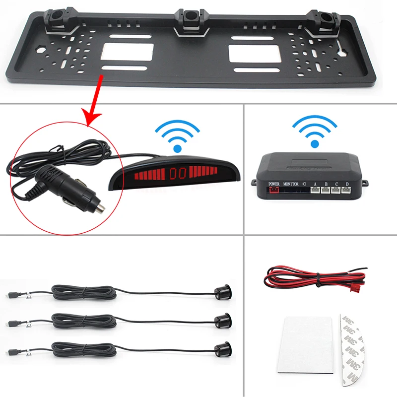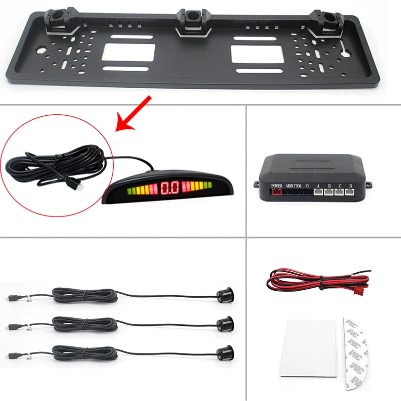 -Простая установка винтом под номерным знаком-Подходит для британских/европейских номерных знаков-Сигнализация с помощью трехступенчатого Биби-звука или человеческого голоса-Отображение расстояния и направления препятствий на дисплее-Светодиодный или ЖК-цифровой дисплей-Три ультразвуковых датчика обнаруживают препятствия