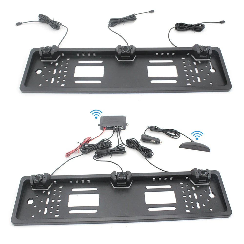 Универсальная автомобильная парковочная система с датчиком радара, комплект, Европейский, немецкий, русский, Европейский номерной знак, держатель рамы