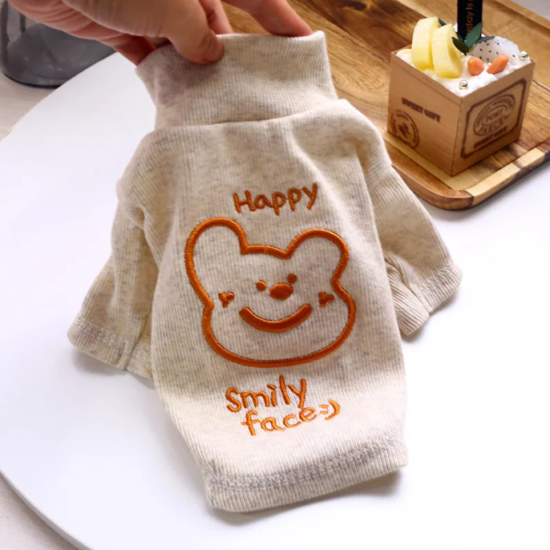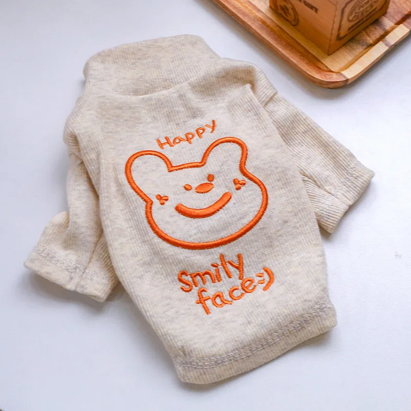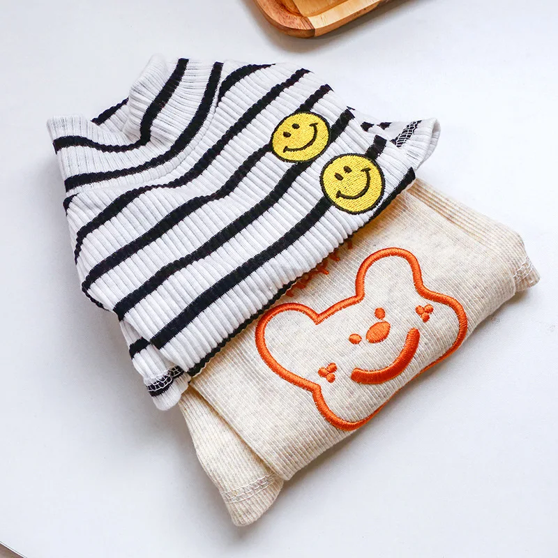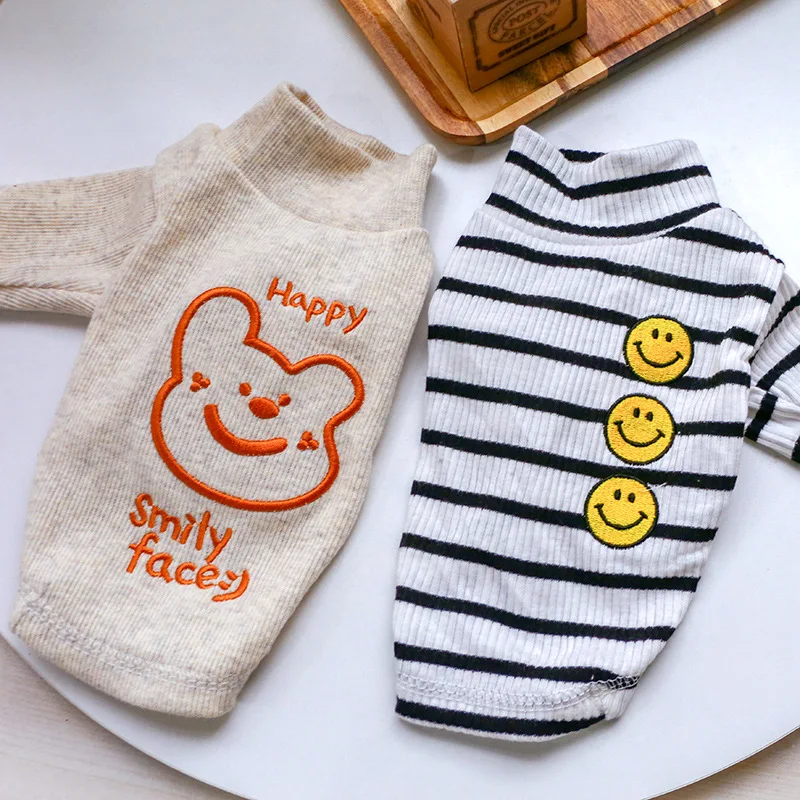 Осень 2021, одежда для домашних животных, собака, Тедди, Бишон, рубашка с круглым вырезом, смайлик, медведь, полосатая Базовая рубашка, собака и владелец, сочетающиеся наряды, одежда для домашних животных