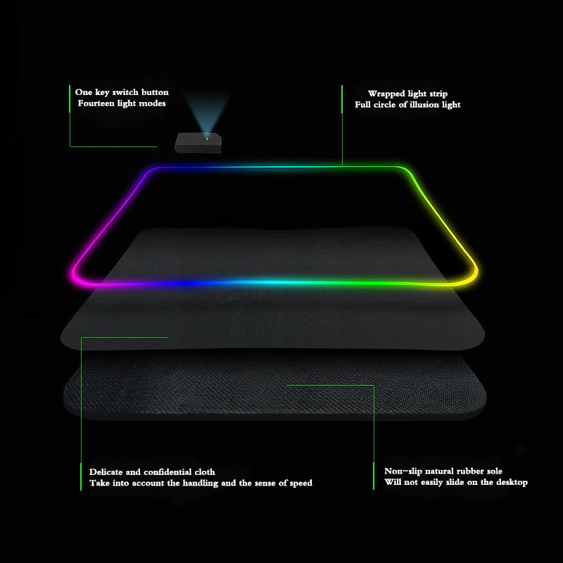 RGB игровой коврик для мыши, большой размер, красочный светящийся для ПК, компьютера, настольного компьютера, 11 цветов, светодиодный светильник, Настольный коврик, игровой коврик для клавиатуры
