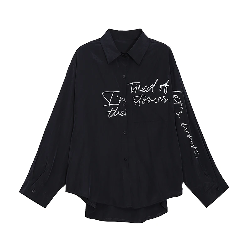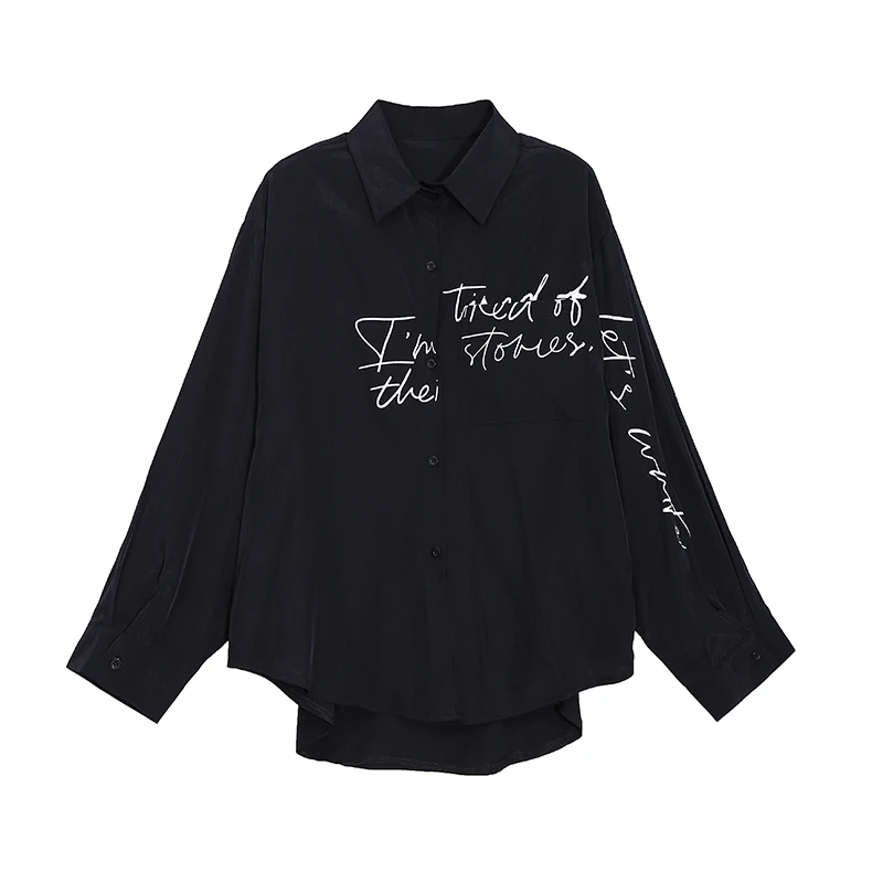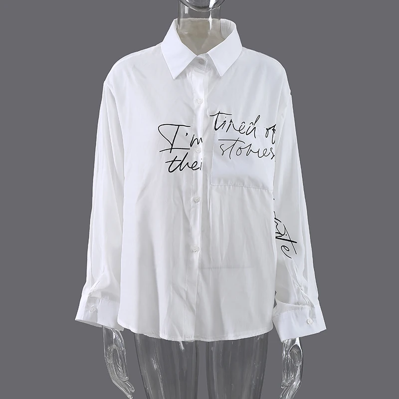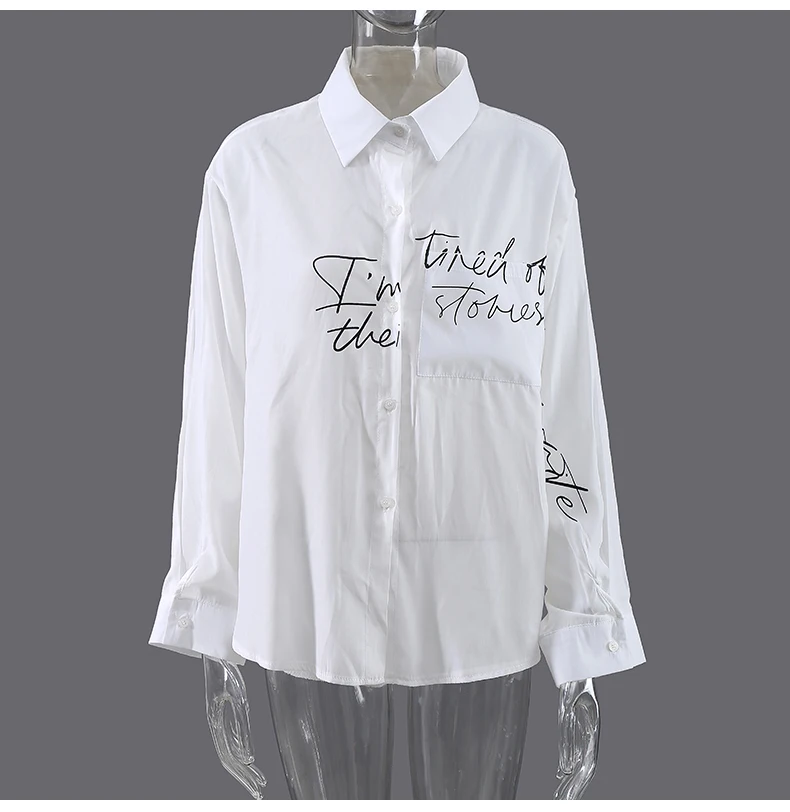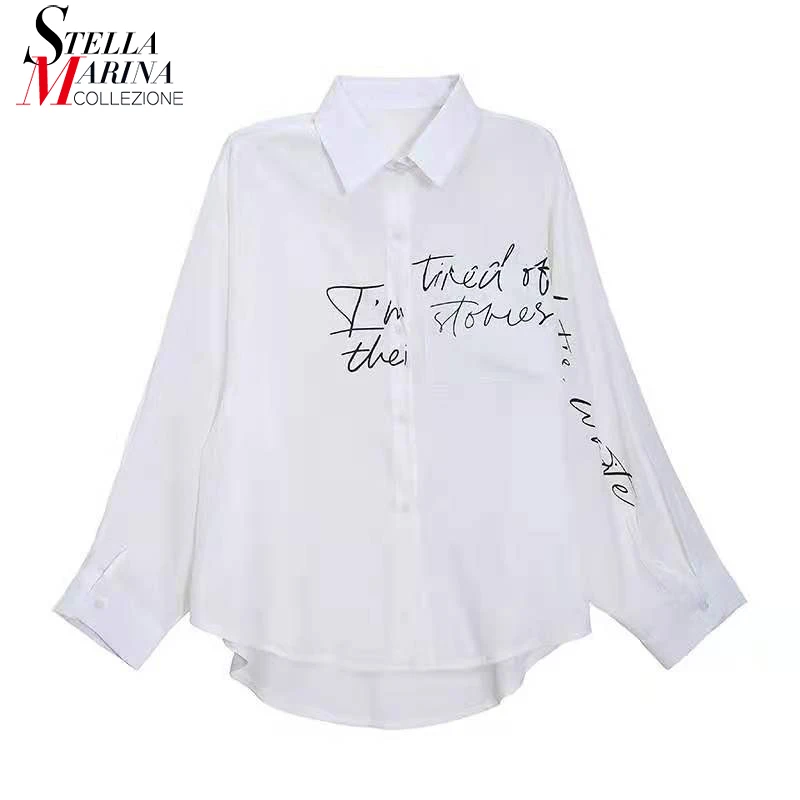 * Осенние женские черные белые повседневные блузки с длинным рукавом с буквенным принтом, хипстерская женская рубашка большого размера J21525