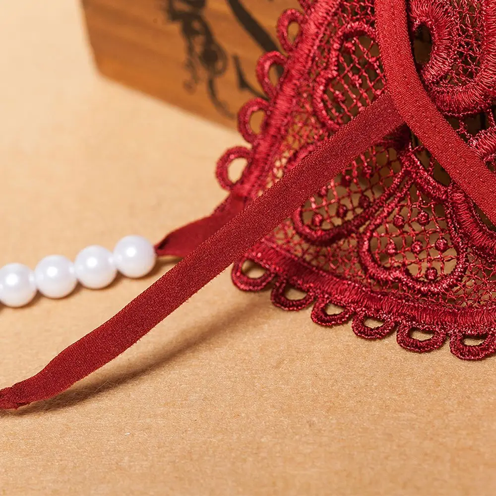 Сексуальные вышитые жемчужные кружевные стринги, женские трусики, ж...