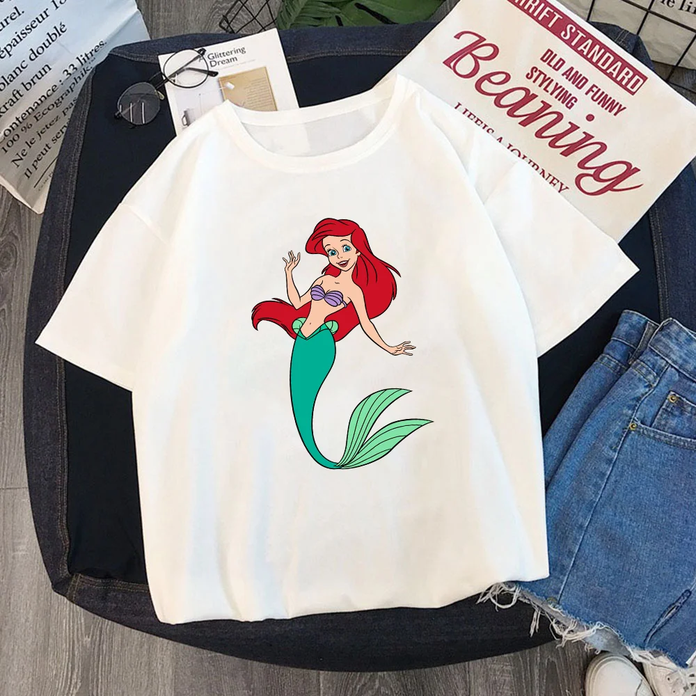 Модные футболки для женщин с изображением диснеевских принцесс, лет...