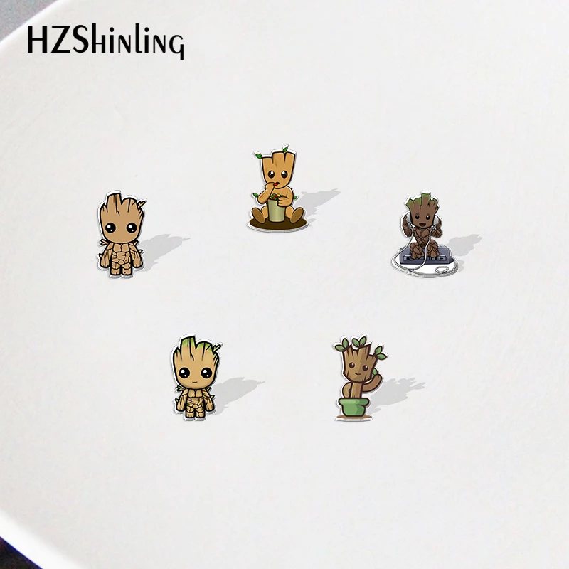 Акриловые булавки с рисунком Groot, эпоксидные булавки для украшений