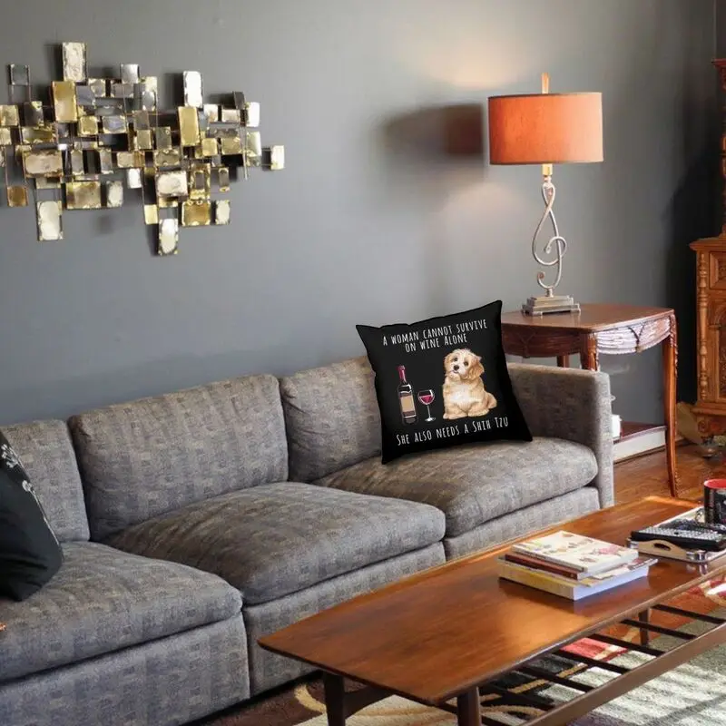 Крутая наволочка Shih Tzu и винный квадрат, декоративная подушка дл...