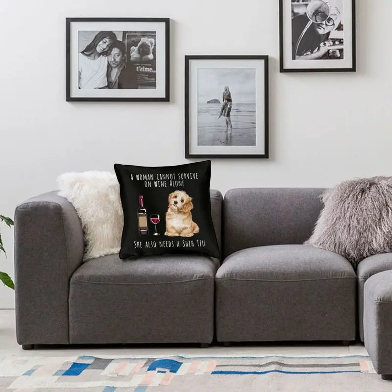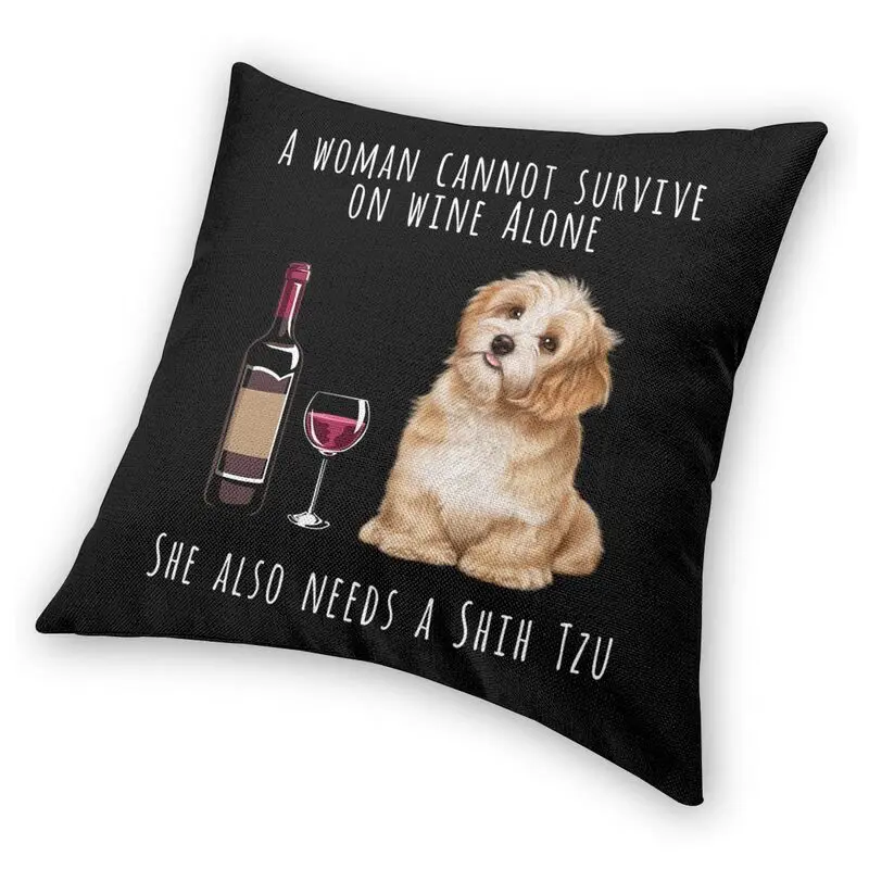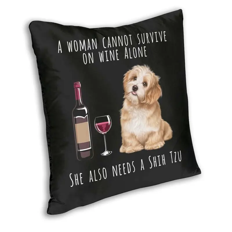 Наволочка для подушки Shih Tzu с изображением забавной собаки и винного вина, домашний декор, квадратная наволочка для щенка, 40x40, наволочка для дивана