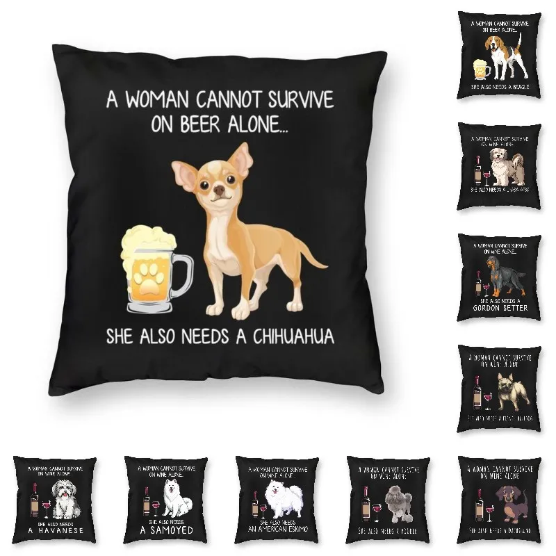 Наволочка с принтом мопса Бордер терьера Чихуахуа и вина, квадратная наволочка для дивана, автомобиля, подушка для влюбленных