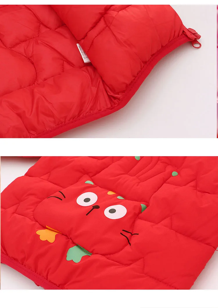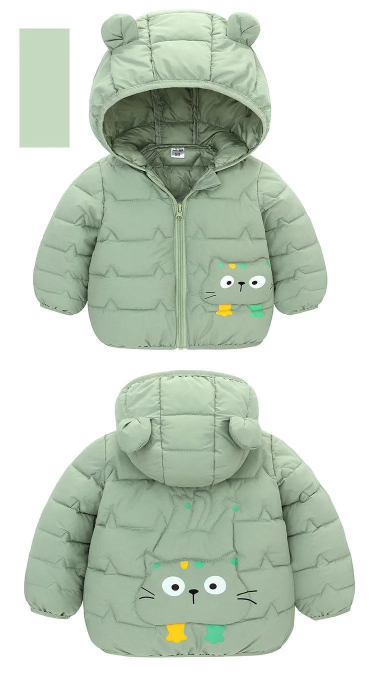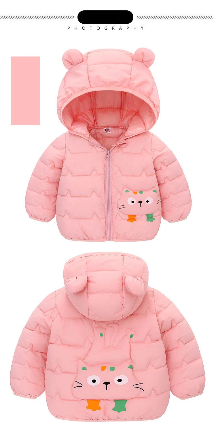 Детский пуховик с капюшоном, на молнии, с мультяшным принтом
