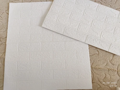 Отличные обои, супер быстрая доставка в течение 10 дней. Получила на кассе Пятёрочки. Упаковано всё хорошо, ничего не повредилось. Продавец такой приятный в общении, даже при покупке в 590 рублей, он был очень доволен моим заказом. Отличный сервис. Обои очень достойно выглядят, нигде ничего не отлуплено. До этого заказывала у другого продавца, там на всех, практически, обоях были маленькие дырочки. Отличие есть (те, что пришли от другого продавца, выпуклее рисунки, чем у данного продавца), но у этого и косяков нет. Поэтому, для меня совершенно не критично. Мы уже проклеяли туалет, а эти я в прихожую заказала. Очень советую до поклейки, прошпаклевать и тщательно отбелить стену. Ну очень уж видно что там под этими кирпичиками. Покажу результат туалета, только эти обои были приобретены у другого продавца, но разницы, в принципе нет. Обязательно приложу фото, где есть отличие выпуклости данного изделия из разных магазинов. Удачной вам покупки! А продавцу огромное спасибо))