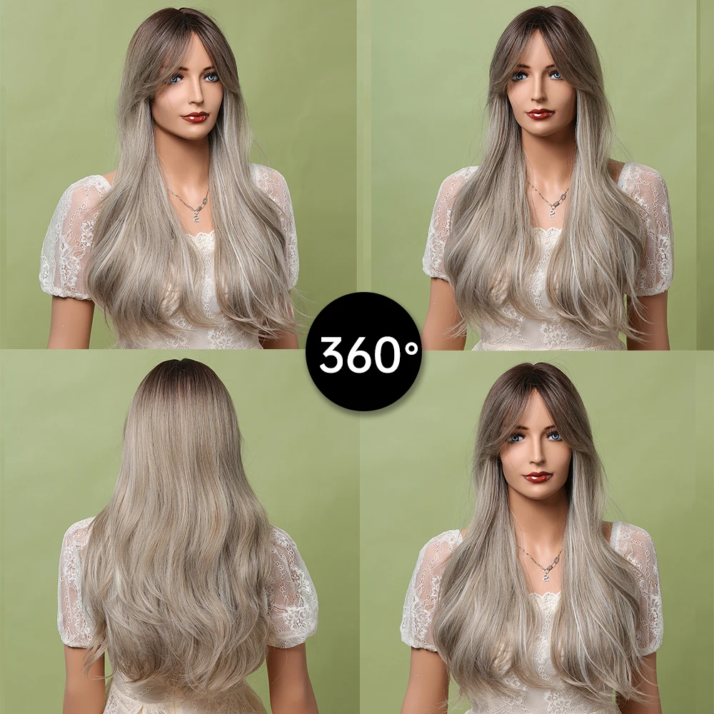 Женский длинный волнистый парик GEMMA, черный, коричневый, серый, пепельно-белый синтетический парик с челкой, Повседневные Вечерние парики для косплея, термостойкие волосы