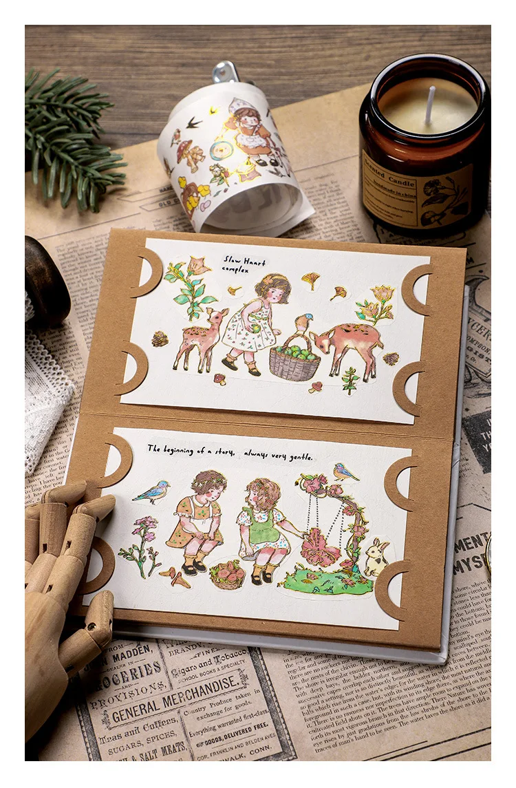 Бронзовая лесная девушка серия Washi лента наклейки с милыми рисунк...