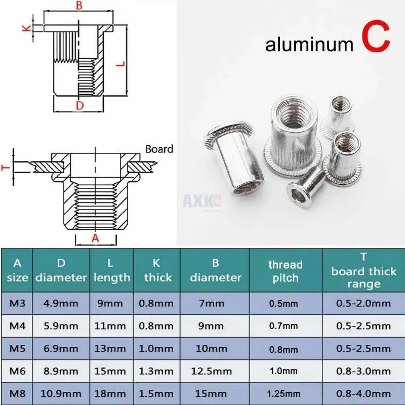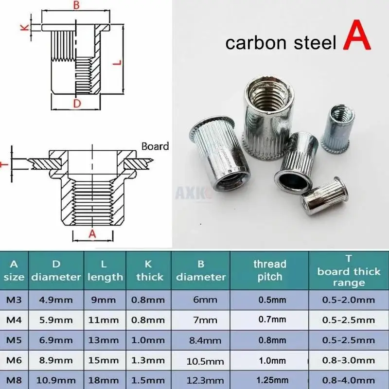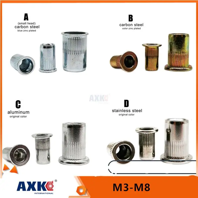 1020 шт., М3, М4, М5, М6, М8, 304, нержавеющая сталь, углеродистая сталь, алюминий, плоская головка, заклепка, гайка, вставка Rivnut, гайка, гайка для болта
