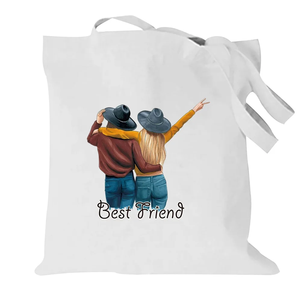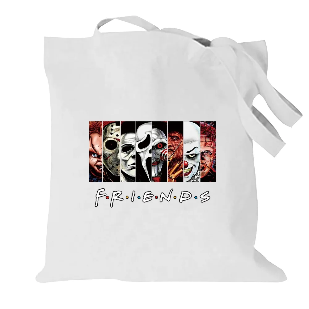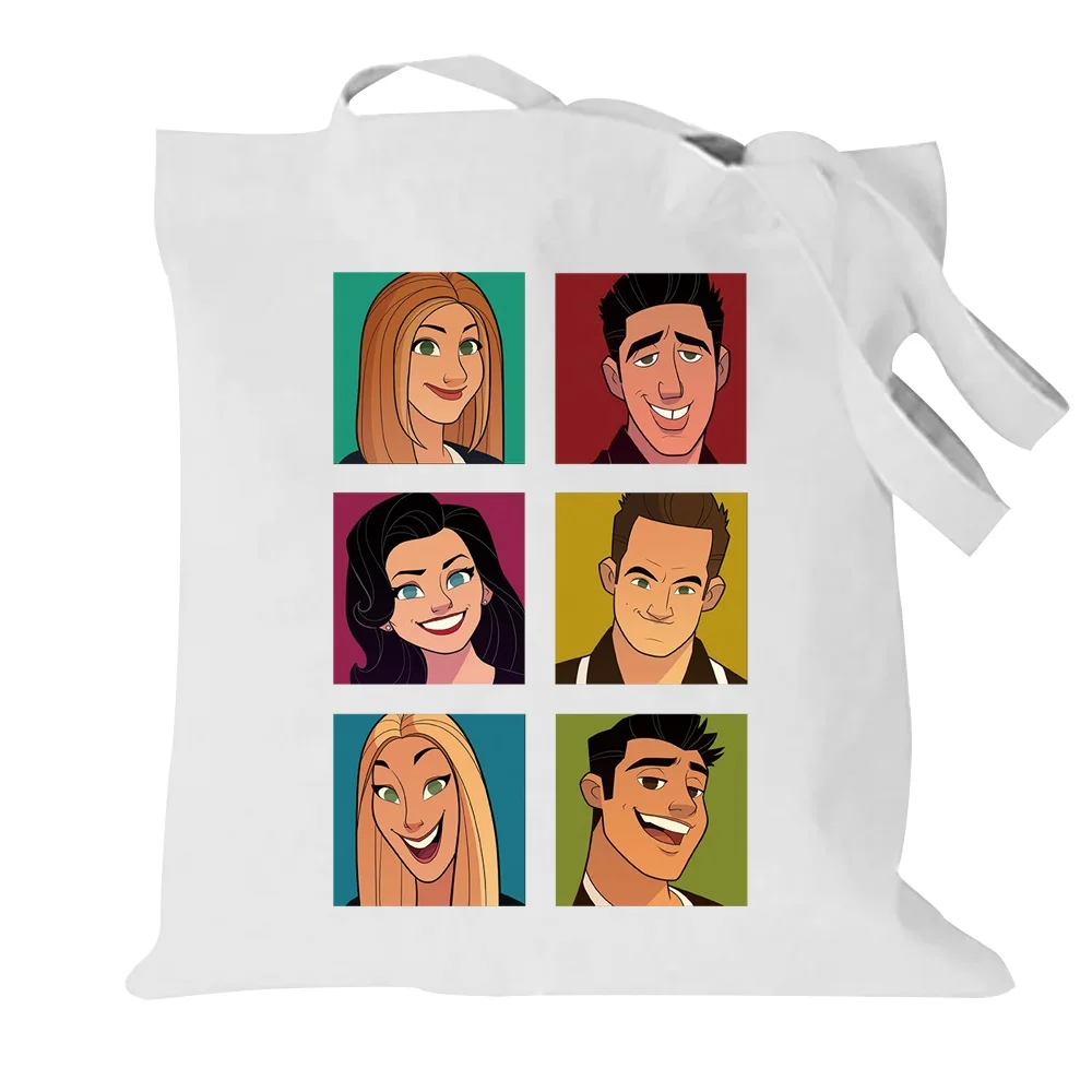 Женская сумка на плечо с забавным рисунком друзей, сумки для покупок из хлопчатобумажной ткани, многоразовые сумки для продуктов, женская сумка