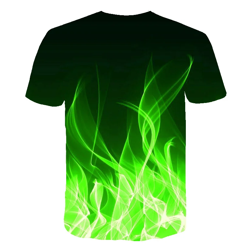 Мужская футболка с 3D-принтом зеленого пламени, зеленая психоделическая Повседневная футболка с круглым вырезом для пары, лето 2021