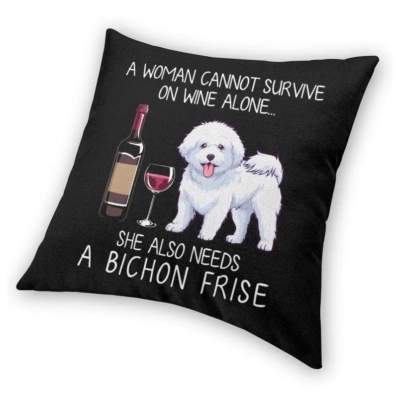 Наволочка Bichon Frise And Wine Square, домашний декор, подушки для любимых собак, наволочка для дивана с двусторонним принтом