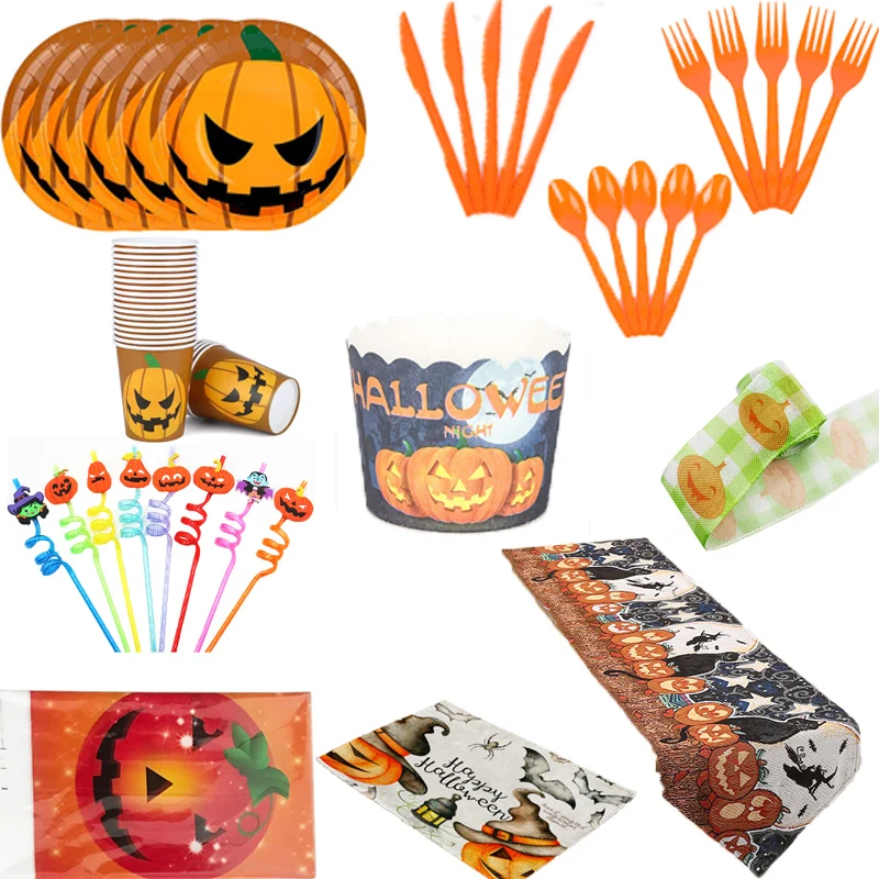 112 шт. скатерть в виде тыквы на Хэллоуин, вечеринку, нож, ложка, бумажный поднос, чашка, соломинка, одноразовая посуда, предметы первой необходимости Вечерние