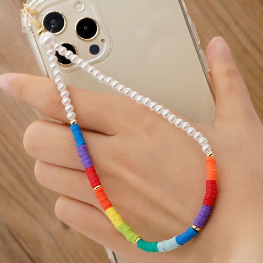 Boho имитация жемчуга акриловые мобильный телефон ремешок Мягкая Ке...