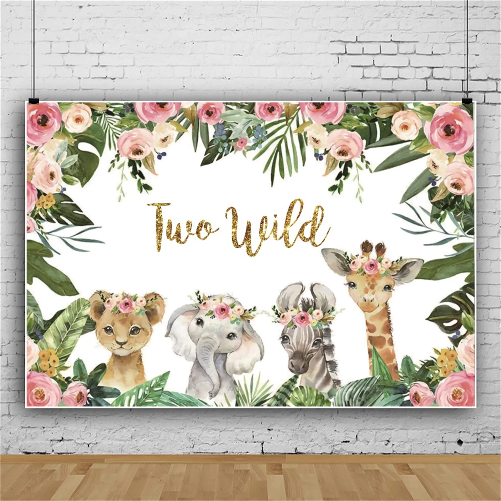 Laeacco для вечеринки в стиле сафари детский день рождения фон для фотосъемки джунгли дикие животные малыш портрет индивидуальный Постер фото фон