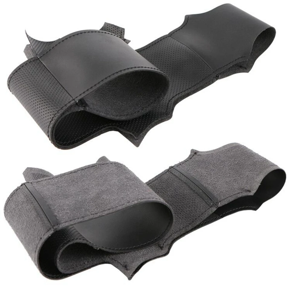 Сшитая вручную черная искусственная кожа Чехлы рулевого колеса авто...