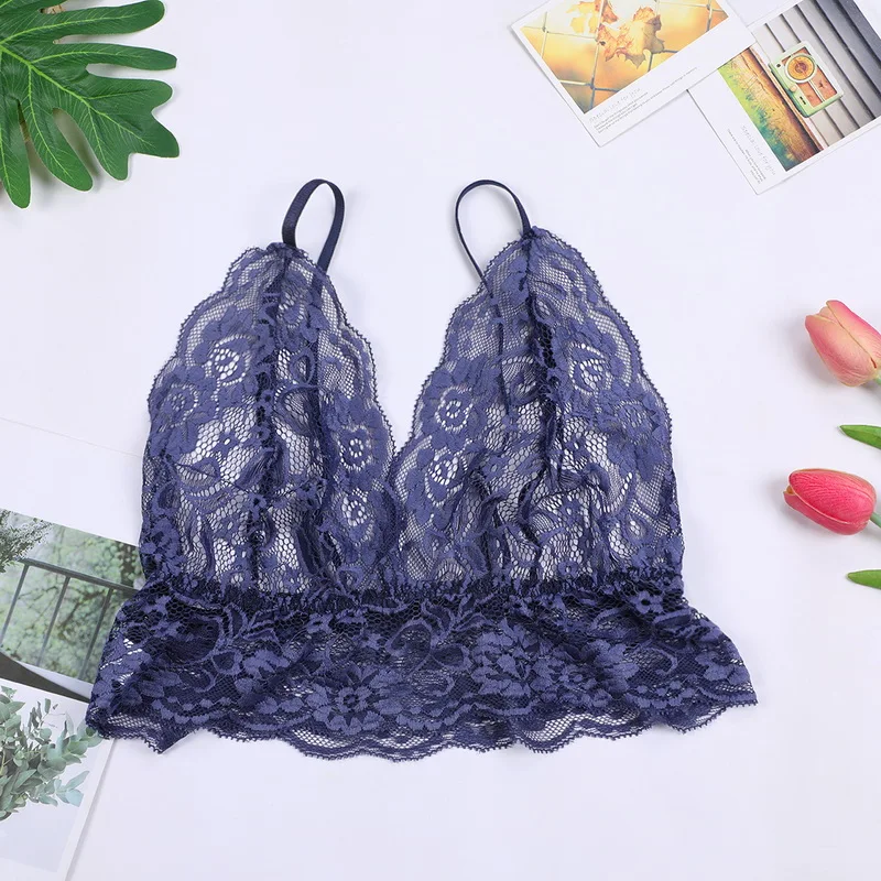 Бюстгальтер женский кружевной, тонкий, с треугольными чашками, с U-...