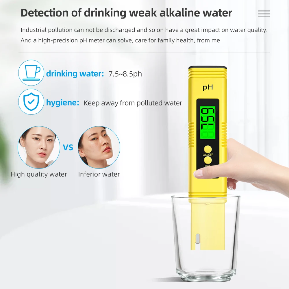Компактный портативный дизайн: Карманный измеритель pH, который также легкий и компактный. Полная Скрытая посадка в сумке или кармане для удобной, повседневной переноски.