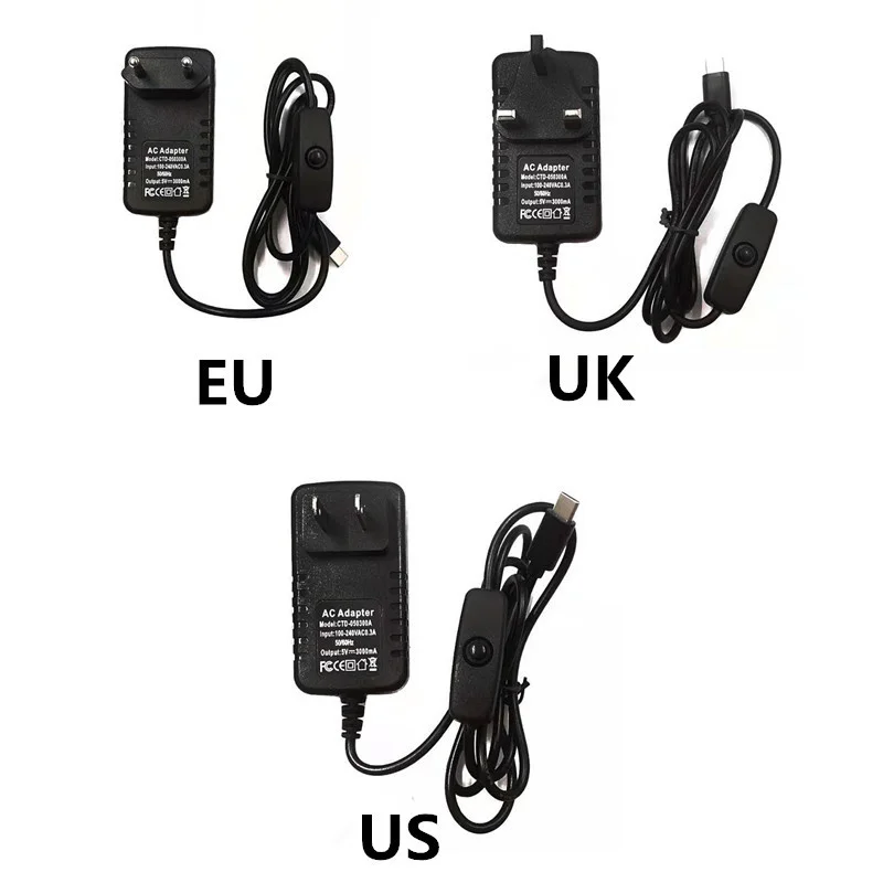 5 в 3A Raspberry Pi 4 блок питания Type-C адаптер питания с переключателем вкл/выкл EU US AU UK зарядное устройство для Raspberry Pi 4 Model B