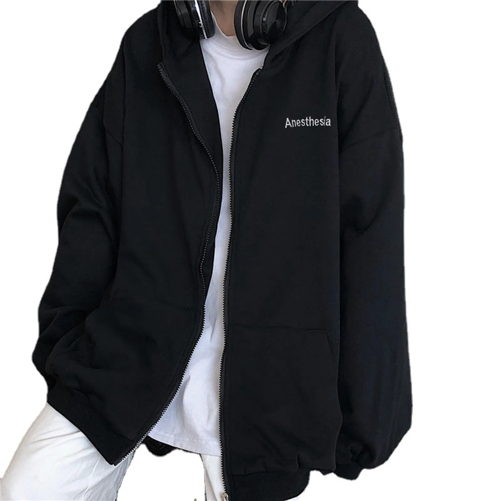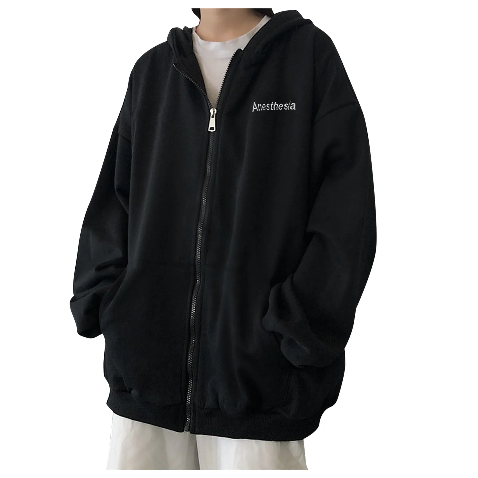 Женская куртка, пальто, толстовка, свитшот, винтажные Топы в стиле Харадзюку, однотонный свитшот на молнии с длинным рукавом и карманами, пуловер с рисунком на шнурке
