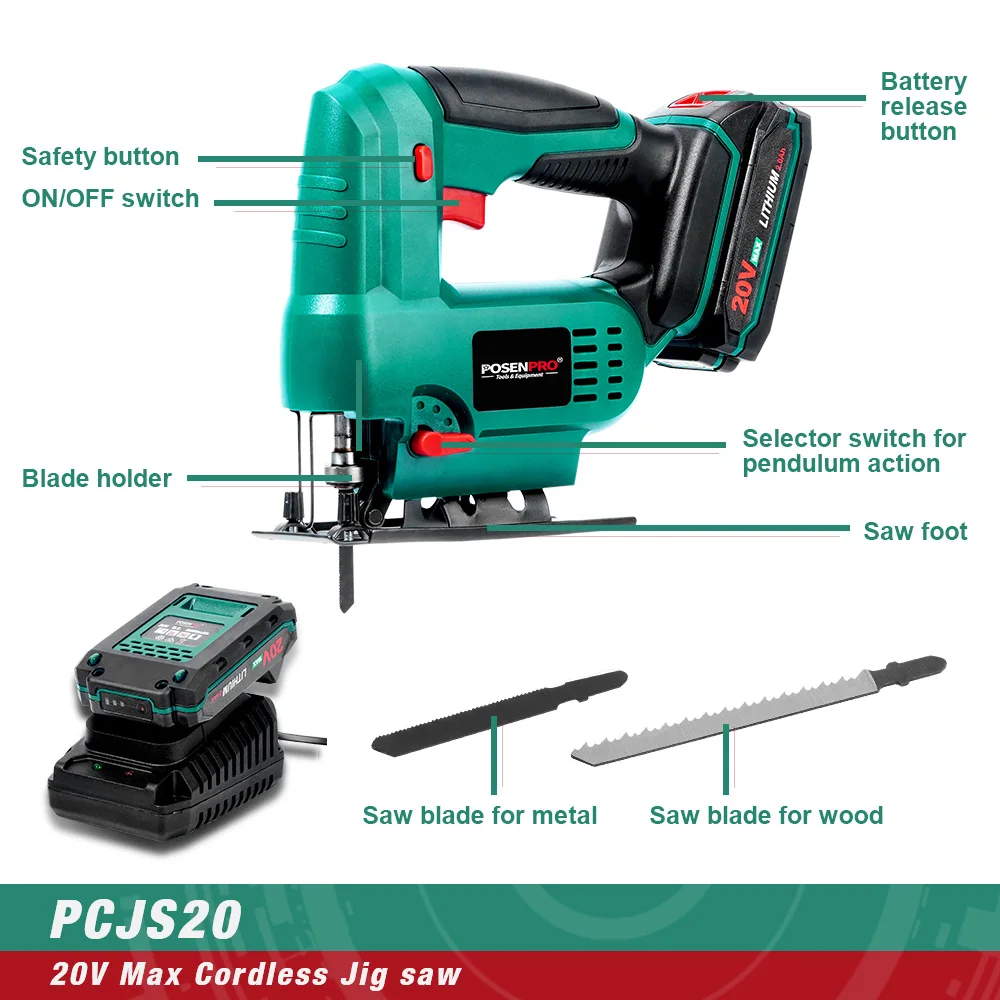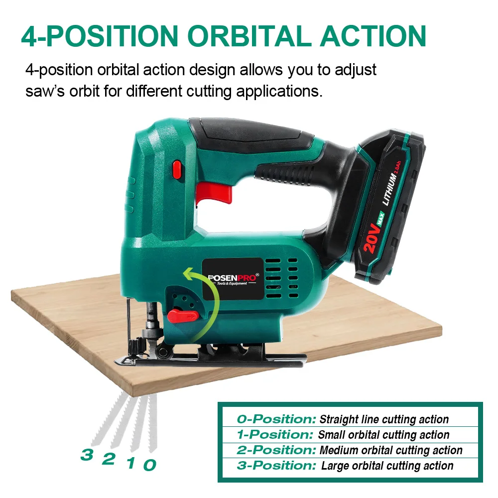 POSENPRO Беспроводная пила 20 в электрическая пила 3 орбитальная и Прямая резка регулируемый Рабочий угол с деревянными металлическими лезвиями