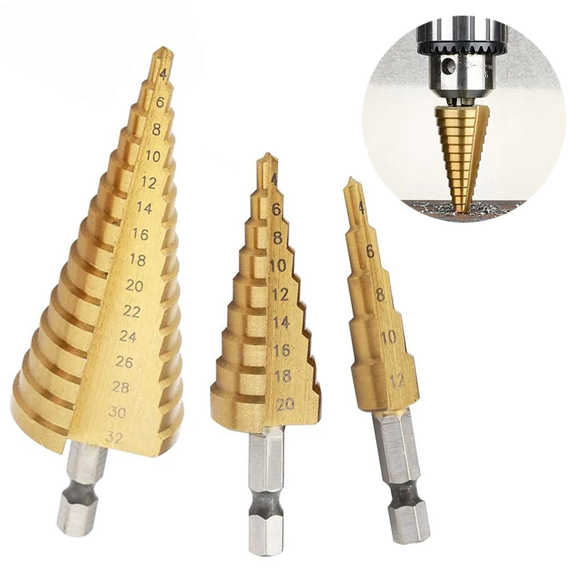 Шестигранное ступенчатое сверло 4-12 мм 4-20 мм 4-32 мм из быстрорежущей стали с прямым желобом и титановым покрытием для сверления отверстий по дереву и металлу