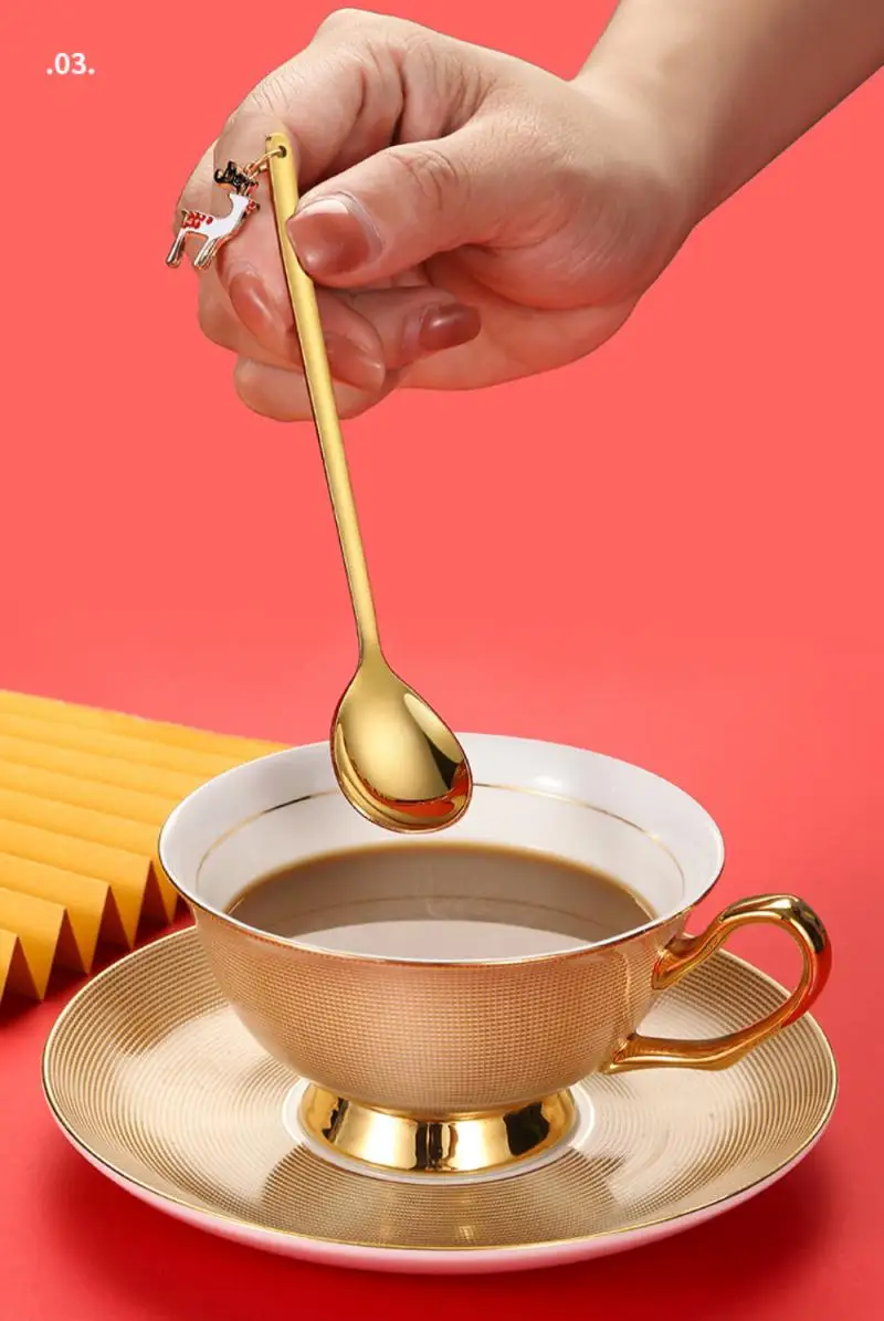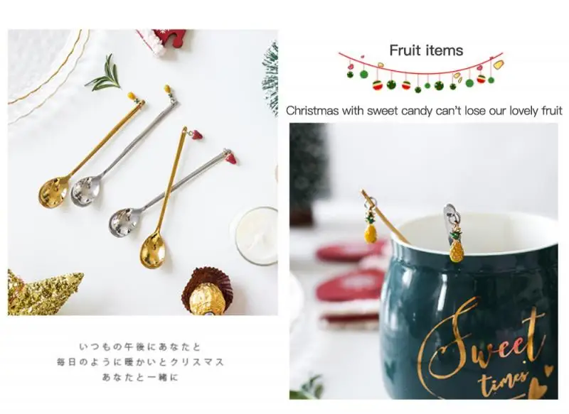Металлические рождественские ложки, украшения для новогоднего стола 2021 на новый год ложка для десерта, кофе