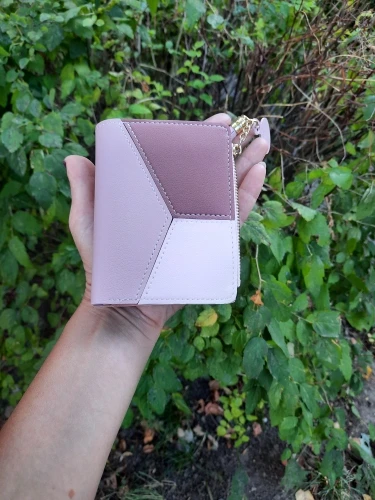 Кошелек женский, с геометрическим рисунком, маленький, лоскутный, розовый