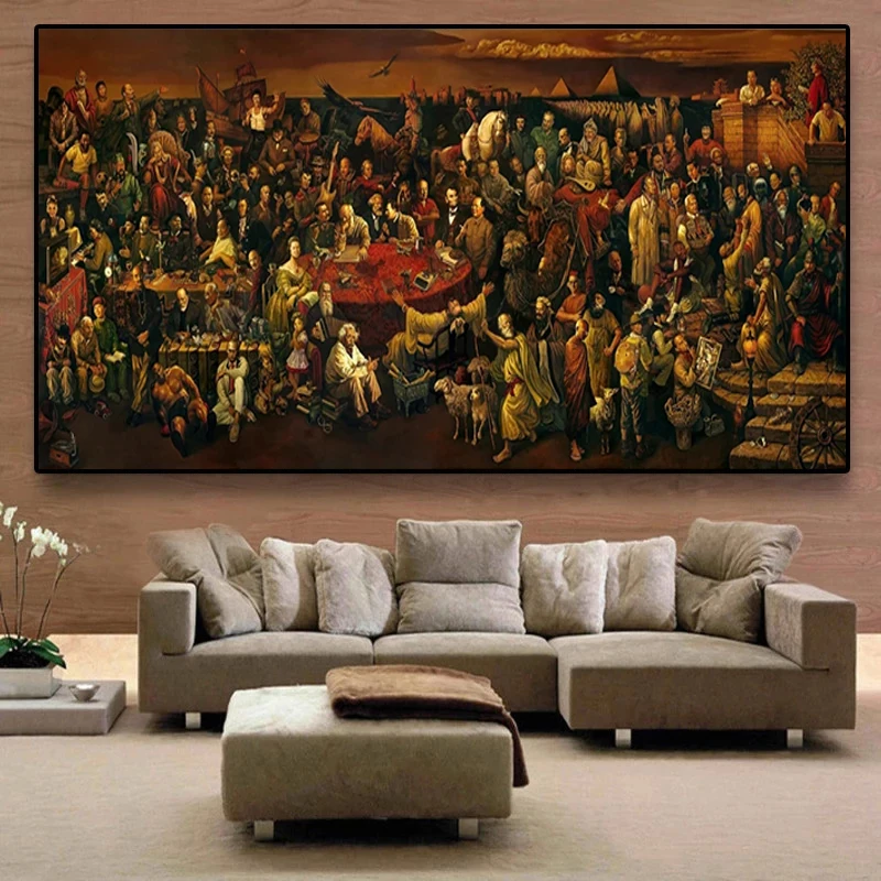 Большого размера холст искусство знаменитые люди живопись обсуждающ...