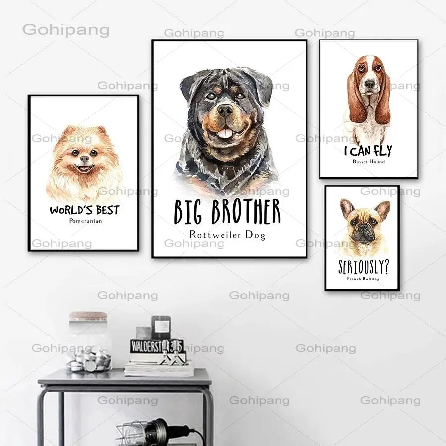 Скандинавский простой милый собачий холст с принтами, набор наездников, Ротвейлер, померанский Французский бульдог, фотообои для гостиной, дивана, Настенный декор