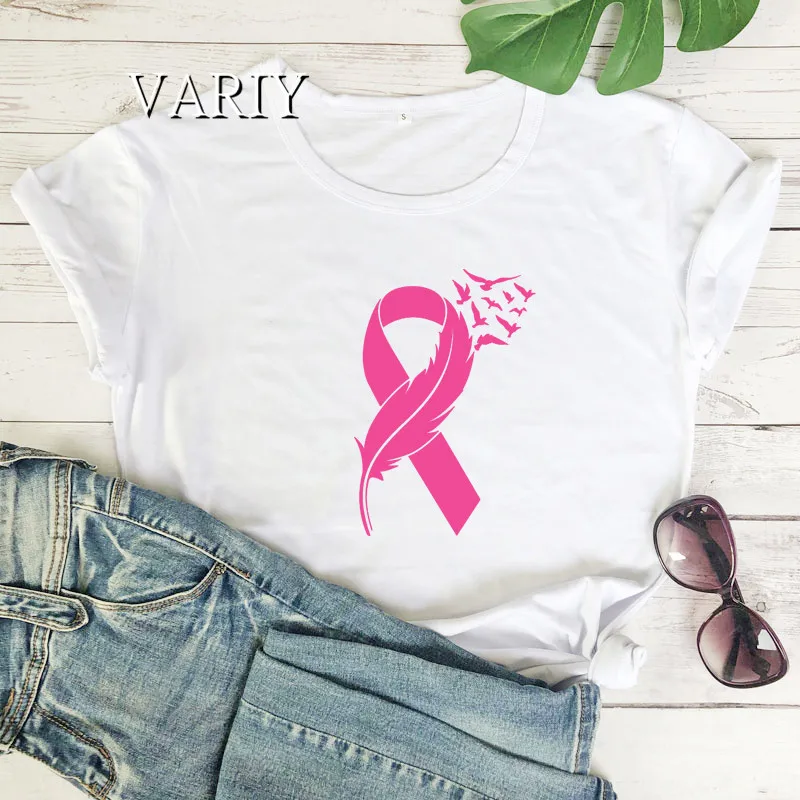Женская футболка с ленточным пером и птицами, эстетическая футболка, топы с изображением бойцов, страдающих раком груди