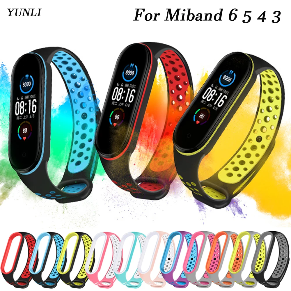 Силиконовый ремешок для Xiaomi Mi Band 5 4 3 6 пористый двухцветный браслет с защитой от пота спортивный дышащий сменный ремешок на запястье