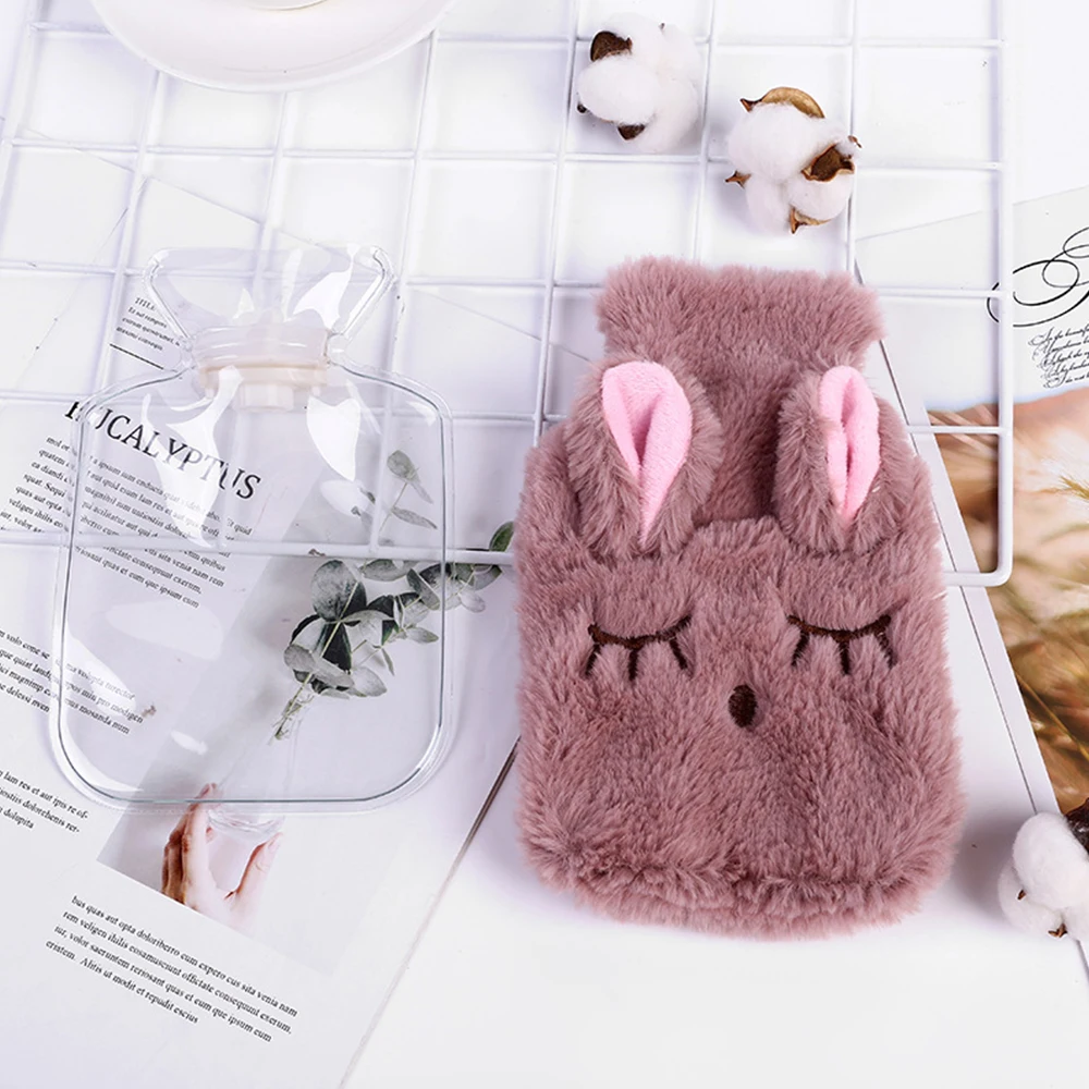 Милая бутылка для горячей воды для девочек, Милая зимняя сумка с кроликом, подогреватель для рук, тепловой пакет с вязаным мягким плюшевым уютным чехлом
